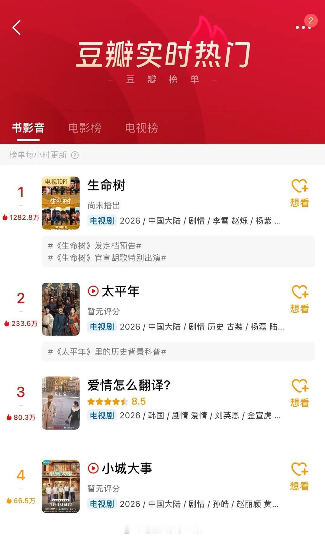 杨紫《生命树》还没开播热度就1282w了!真未播先火