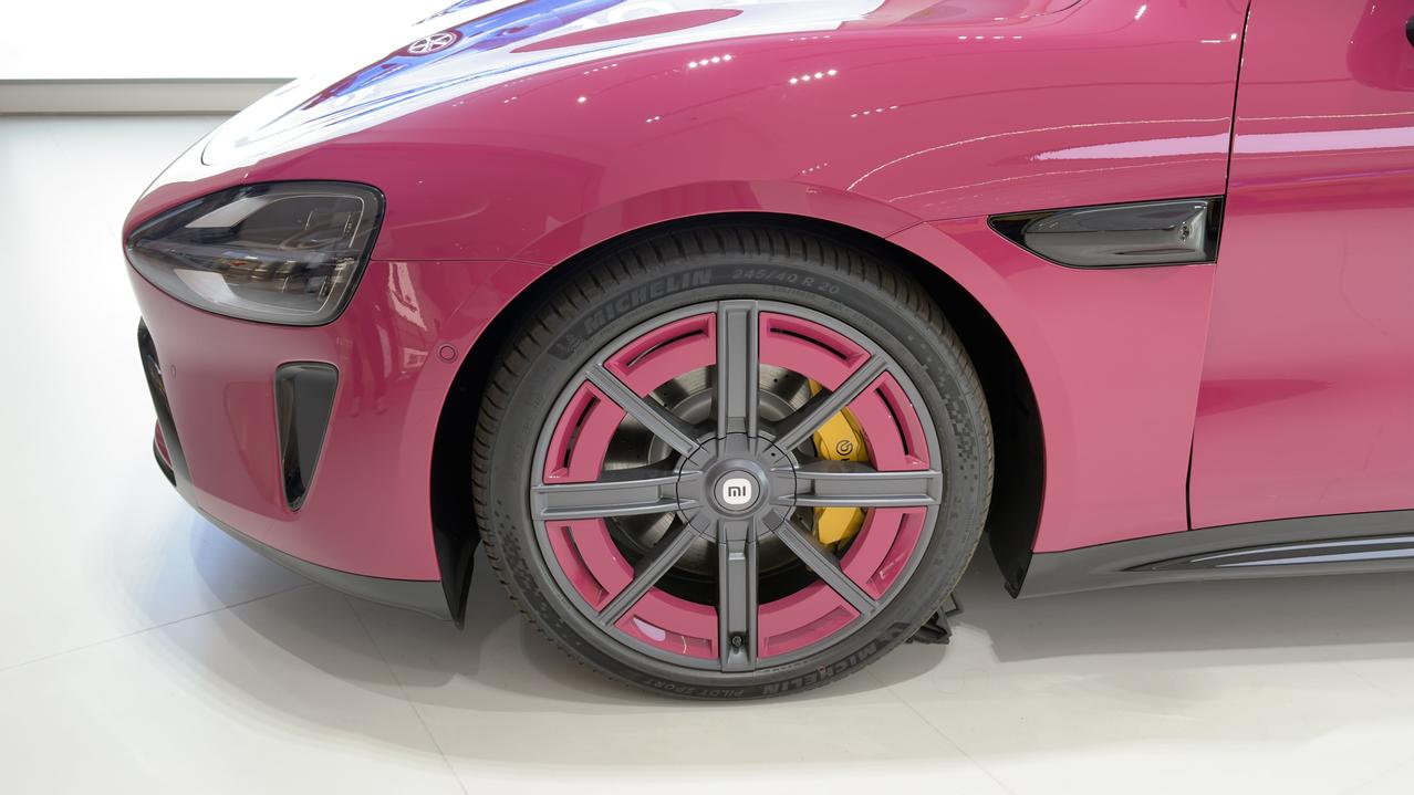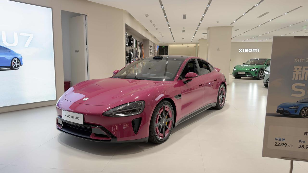 小米之家的「新一代SU7」大屏和预售价广告牌已上,但车依旧是现款小米SU7,璀璨洋红实车确实好看,配上这个轮毂yyds。