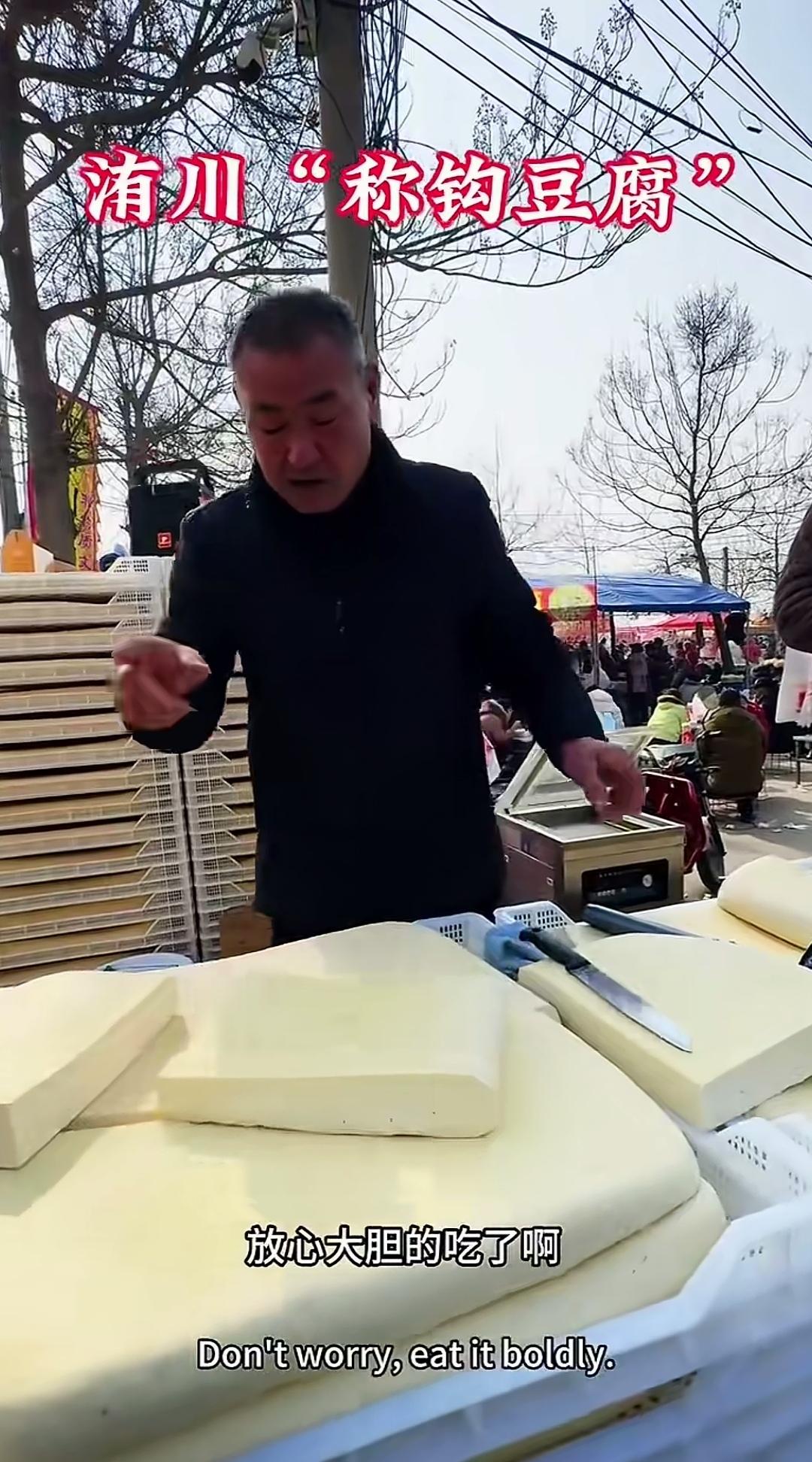 售卖的豆腐竟能用秤钩勾起,成板的豆腐往桌上摔也完好无损。老板在现场大肆宣扬有着“2000年历史的‘洧川豆腐’”,它真有如此神奇? 然而,这类自夸的视频画面在网络上引发了网友的质疑。大家猜测豆腐里或许加了大量胶体,毕竟,本应一碰即碎的豆腐,怎可能经得起秤钩悬挂、摔打而不烂? 换作是你,会相信吗?反正我也心存疑虑。不过,未曾亲身体验,这“洧川豆腐”是否如老板所言那般出色,实在难以断言。 有吃过“洧川豆腐”的网友吗?欢迎到评论区分享感受!