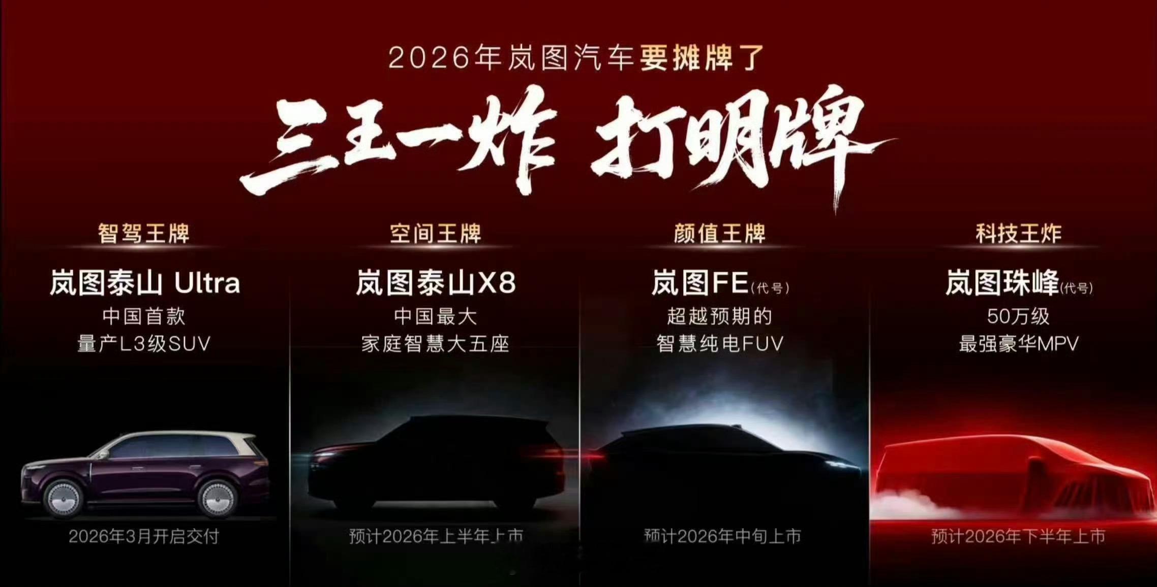 岚图2026新车计划,1款MPV,2款SUV、1款FUV