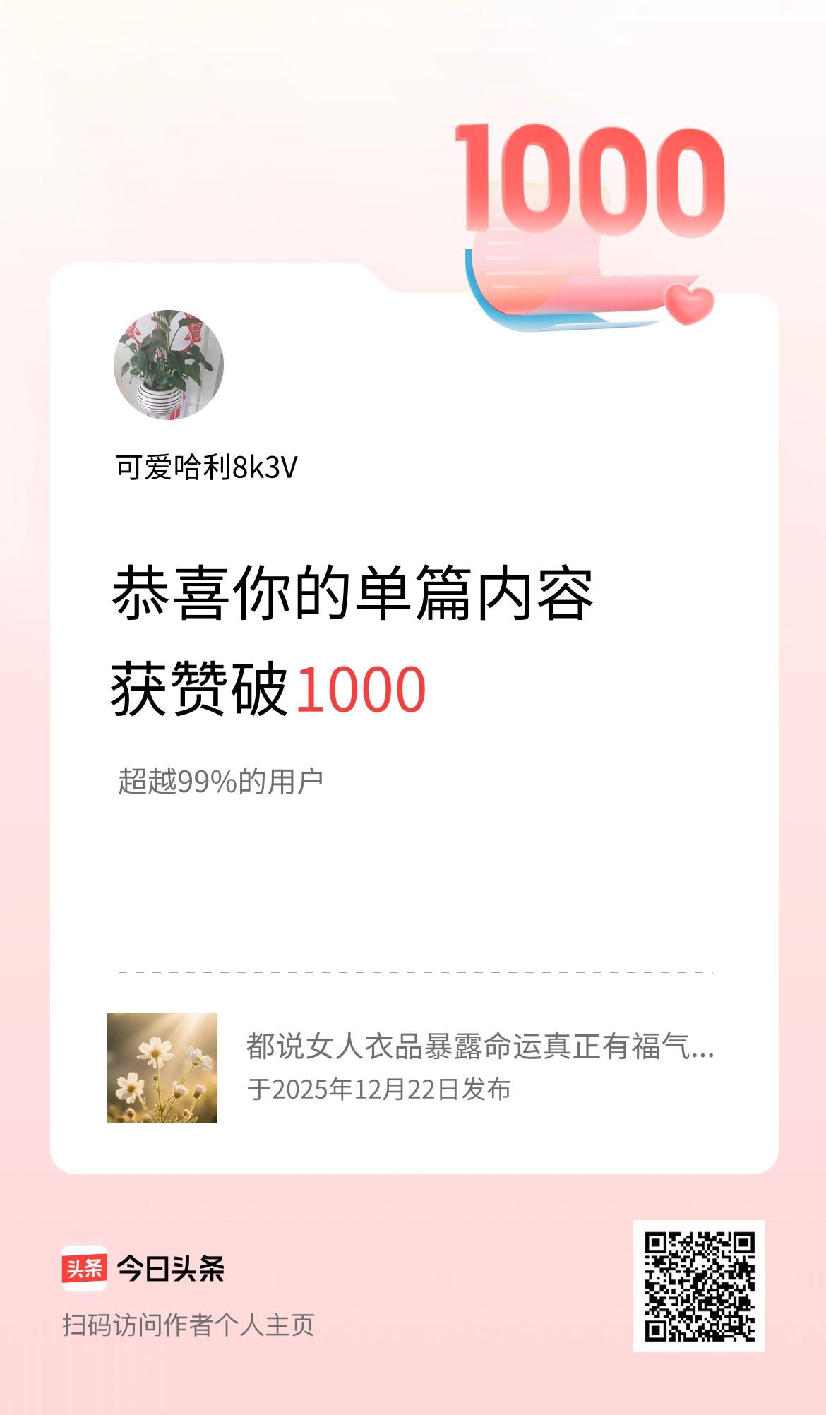我在头条30天内点赞打卡20天,获得“赞满天下”称号