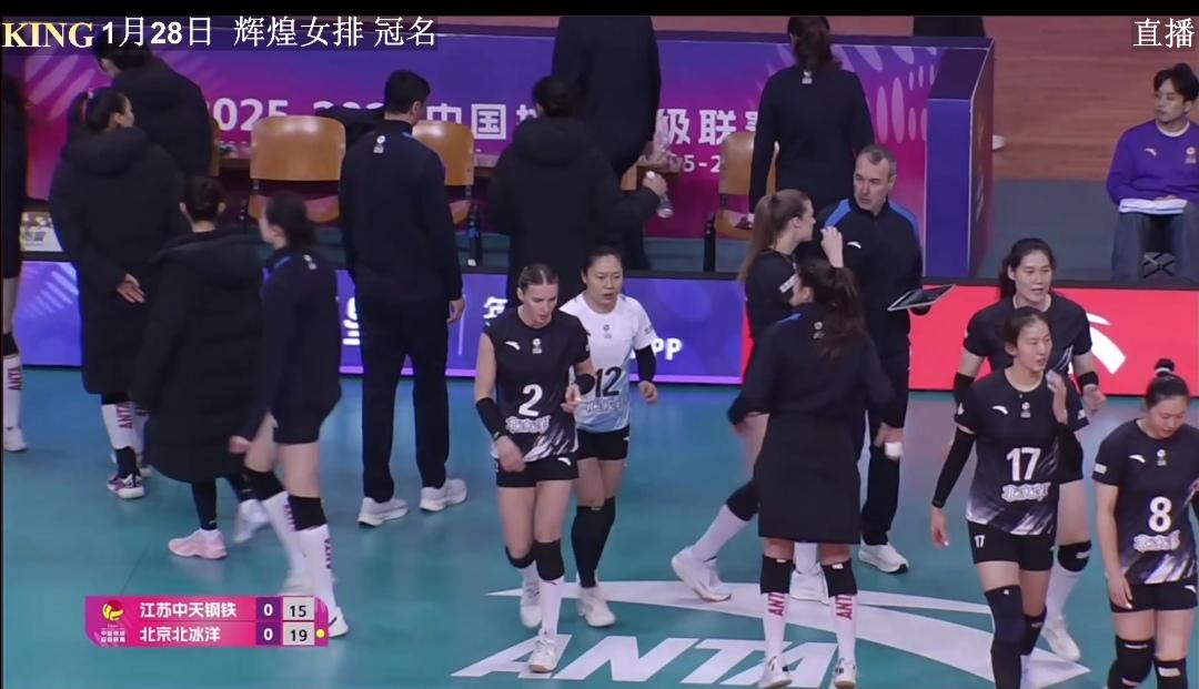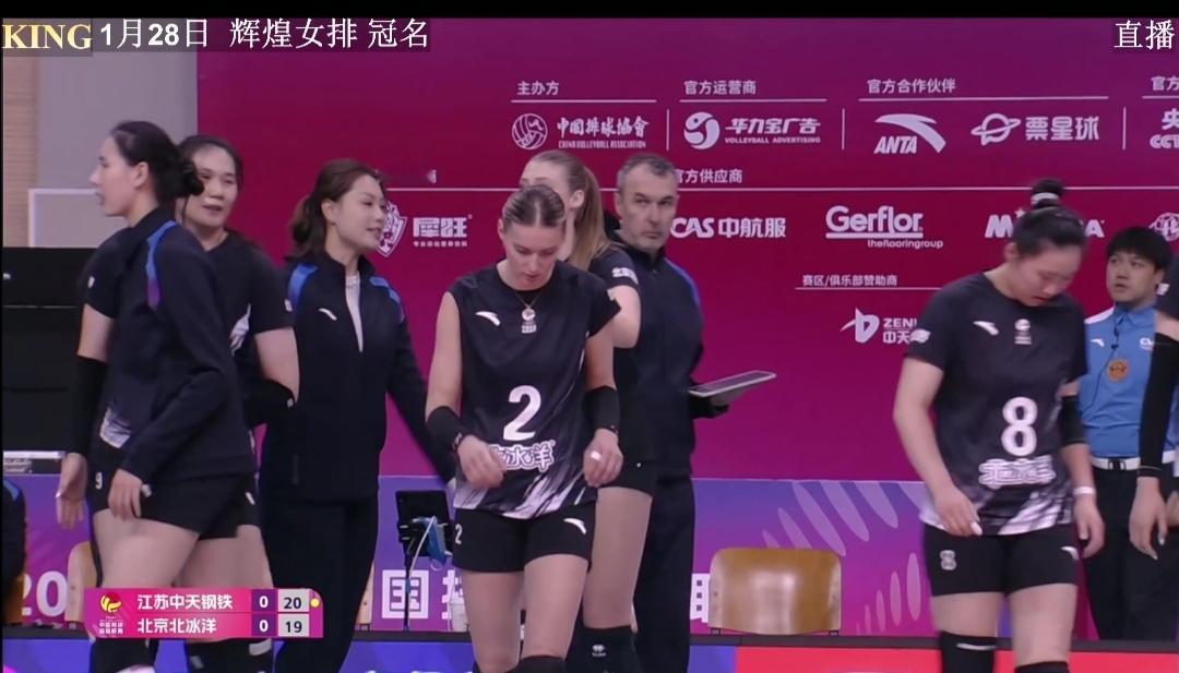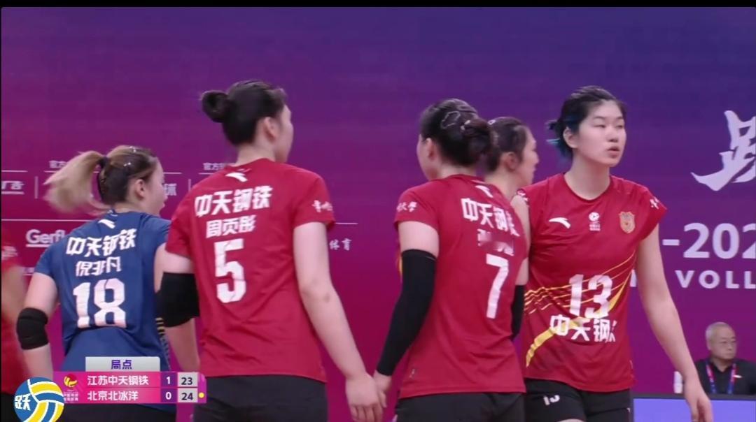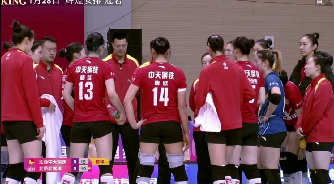 江苏中天钢铁再次3:1胜仨外援的北京北冰洋! 苏京常规赛首次交战江苏队3:1客场载誉而归。二次交手江苏队主场迎战北京北冰洋女排。 这是比一传稳定性、比二传灵活性、比主攻攻击性,北京队仨外援配合越来越好,首发变化了。 前国手9号王云蕗,稳一传。18号金佳宝用高度限制苏队进攻! 江苏队多点开花,尤其是拦网、3号位快攻,累累得手。主攻吴梦洁的对角线唐欣经受了考验。 江苏队七仙女基本上打满全场,配合也越来越默契! 第一局,15-19江苏队落后,17-19京队洋教练德洋暂停。20-19京队用完两次暂停! 江苏队25-22拿下首局! 第二局,比分胶着,一直到21平,江苏队23-25憾负!双方局分1平。 江苏队吴梦洁,杨佳,郭中楠都有精彩拦网。 第三局,第四局江苏队主导了比赛,分别25-12、25-17拿下比赛。 江苏队主场、客场均3:1大胜北京队! 江苏队常规赛12轮比赛10胜2负(上海队),积28分,排名第二! 今晚另一场比赛 山东日照钢铁3:0零封福建安溪铁观音。 山东队8胜4负,积25分。排名第三。 1月31日 16:30 第13轮 山东日照钢铁Vs江苏中天钢铁