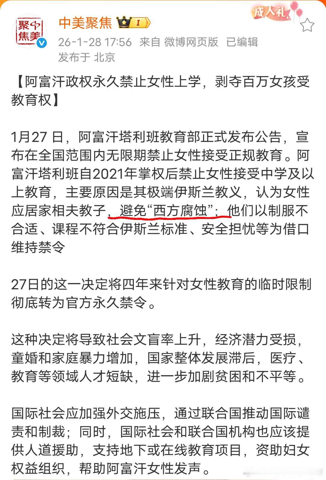 阿富汗政权永久禁止女性上学,避免“西方腐蚀”
