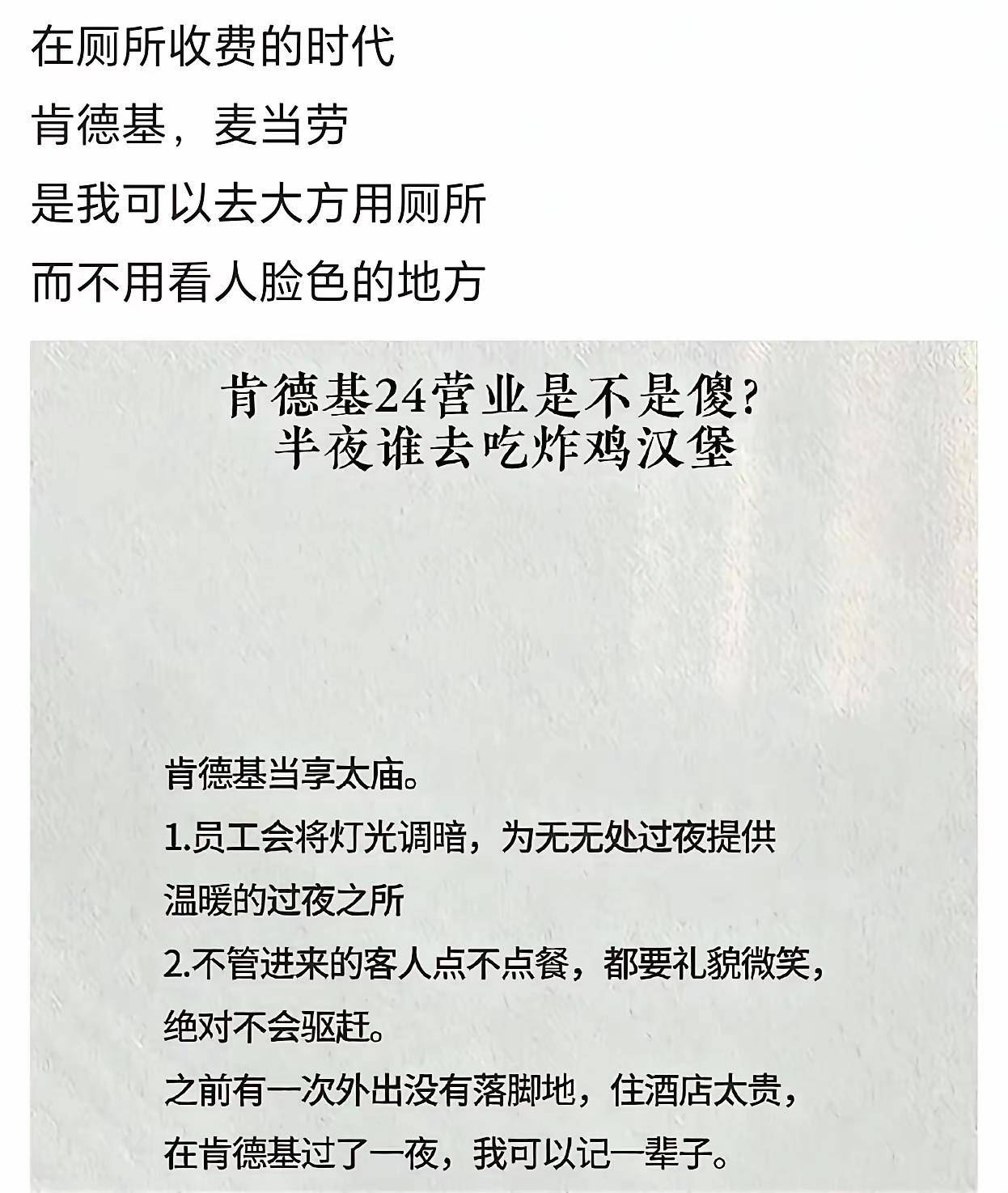 肯德基应该感谢中国给了它可以开24h的场景,在其他国为啥不是24h营业呢?