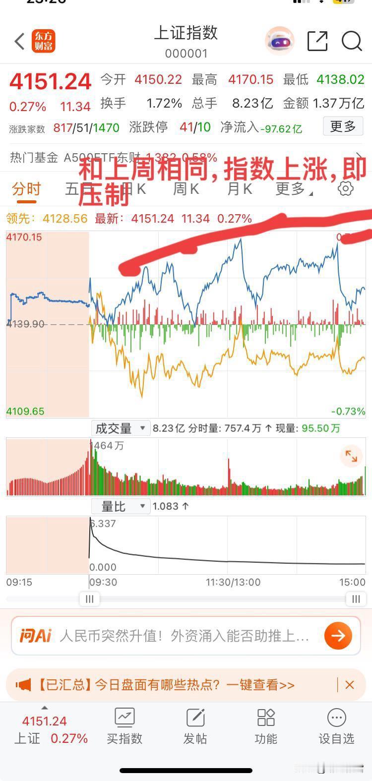 春噪行情:蠢蠢欲动 春躁行情下指数韧性凸显,资金轮动节奏清晰。 上周压制权重,中小盘与科技板块顺势走高;本周风格切换,中小盘、科技遇压,权重接力企稳,今日大盘金属板块强势拉升。 指数收放量十字星,量能配合下震荡蓄势,后续上攻动能充足(结构震荡行情,指数好看不好做,明天个股"相对"好一点)。 向上大趋势未改,结构性行情,节奏放缓,人民币升值↑,美元↓,看好中长期行情! 收盘贵金属消息面收紧,明天短期分化、资金释放,指数低开,资金回归科技,收小阳概率大。 风险管理:宽基尾盘放量,资金净流出,个股涨少跌多,结构震荡行情![玫瑰]