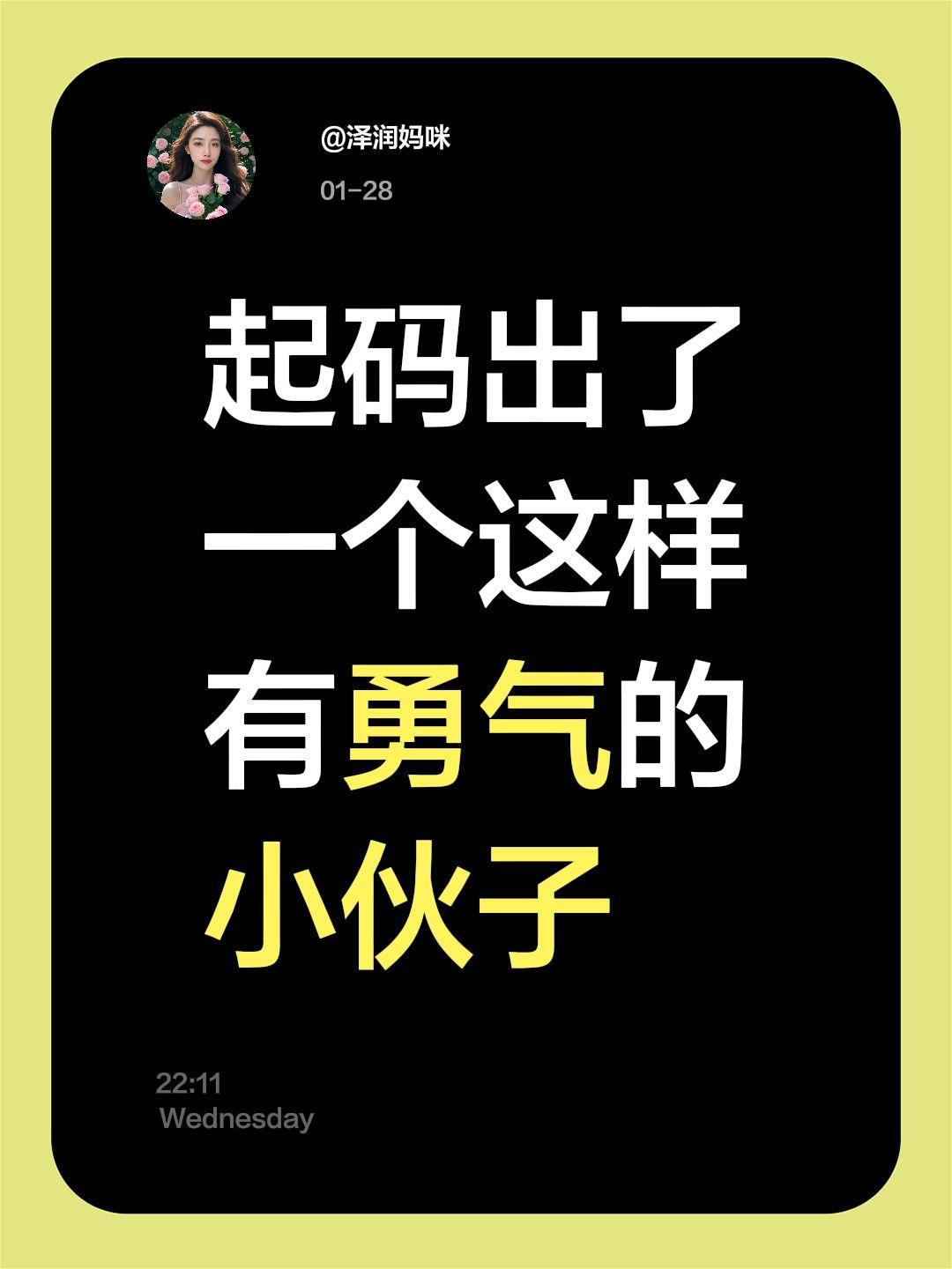 朋友们!猜猜这小伙子是说谁?我评论了@泽润妈咪的作品: 起码出了一个这样有勇气