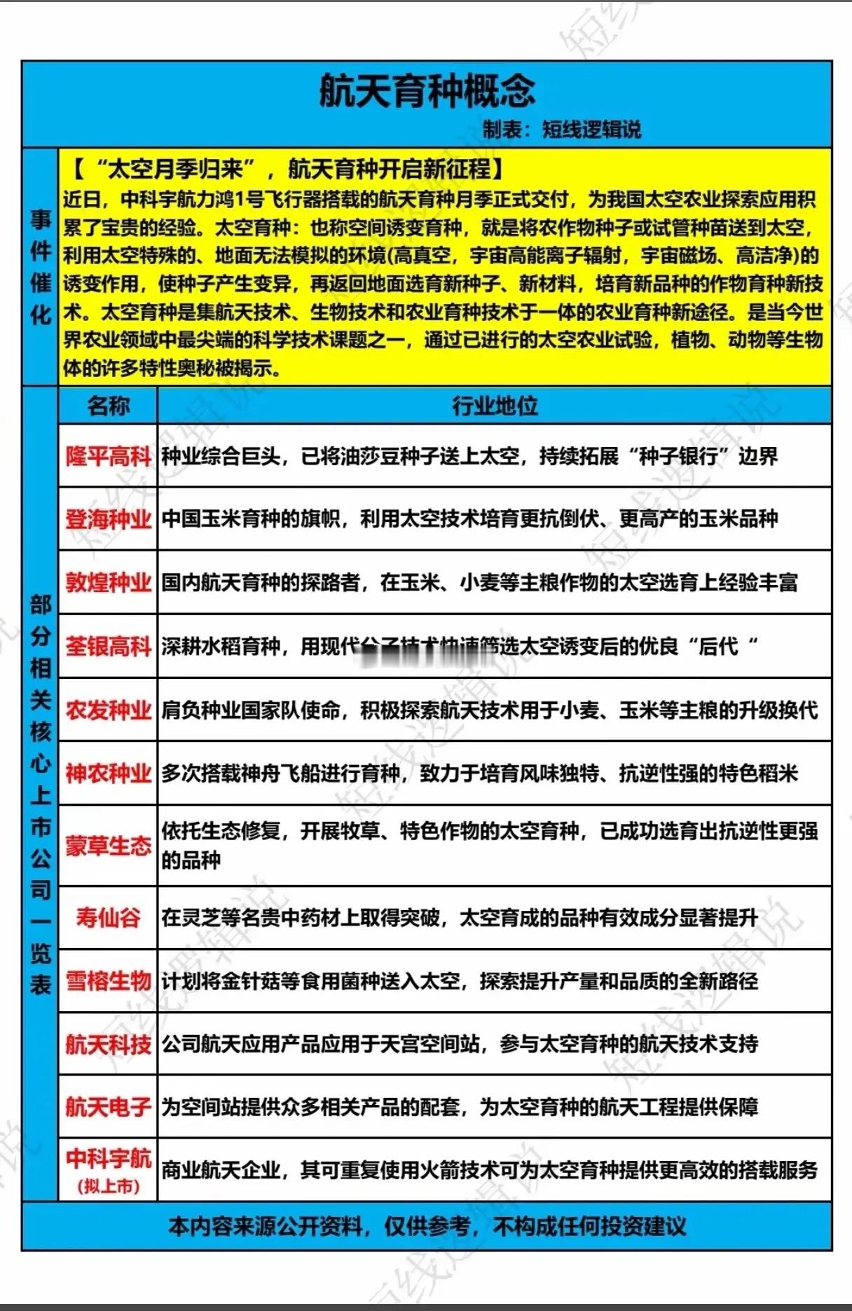 中国种业的太空密码能否改写未来餐桌?当中科宇航力鸿1号搭载的航天育种月季惊艳交付,一朵“太空玫瑰”不仅绽放了浪漫,更揭开了中国农业向宇宙借势的新篇章。在全球粮食安全与农业升级的双重命题下,航天育种这一“把种子送上天,把丰收带回家”的硬核科技,正成为中国种业突围的关键密码,其能量远超想象。从国际视野看,NASA与欧洲空间局早已在空间站开展植物育种实验,试图破解极端环境下的作物生存法则;而中国的步伐更快、更接地气——我们不仅把油莎豆、玉米种子送入太空,更通过敦煌种业、登海种业等龙头企业的持续攻坚,让“太空基因”在主粮作物中扎根结果。隆平高科拓展“种子银行”的星际边界,荃银高科用分子技术筛选太空诱变的优良“后代”,农发种业以国家队使命推动小麦、玉米的太空升级,这些扎实的产业动作,让航天育种从实验室走向了田间地头。不同于国外以基础研究为主,中国航天育种已形成“航天搭载—地面选育—产业转化”的完整闭环。中科宇航可重复使用火箭的技术突破,大幅降低了种子入轨成本;航天科技、航天电子等企业的技术支撑,让太空诱变的“基因魔法”精准可控。更令人振奋的是,这一技术正突破粮食领域的边界:寿仙谷的太空灵芝有效成分显著提升,蒙草生态的抗逆性牧草品种助力生态修复,雪榕生物计划让金针菇“太空出差”,甚至神农种业的特色稻米已带着宇宙的风味走上餐桌。当全球农业面临气候变化与种质资源枯竭的双重挑战,中国航天育种的实践,不仅为14亿人的饭碗装上“安全阀”,更在商业化航天与现代农业的交叉点上,开辟了一条全新赛道。那些被送入太空的种子,带着宇宙射线的“基因印记”,正成为中国种业自主创新的“芯片”,而隆平高科、登海种业等企业的持续投入,更让我们有理由相信:未来的餐桌上,每一粒米、每一颗果,都可能带着来自星辰大海的馈赠。这不是科幻,而是正在发生的现实。航天育种的浪潮已至,中国种业的太空征途,不仅将改写全球农业的竞争格局,更将让我们的餐桌充满“太空风味”。