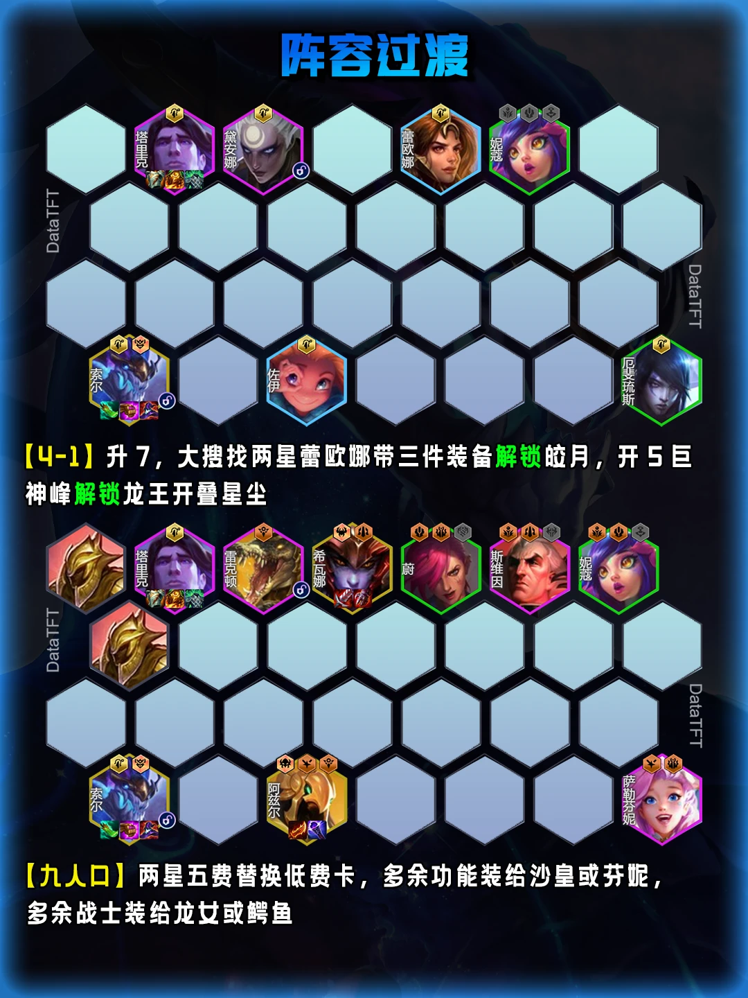 • 9人口成型:两星五费卡替换低费,多余装备给沙皇/芬妮