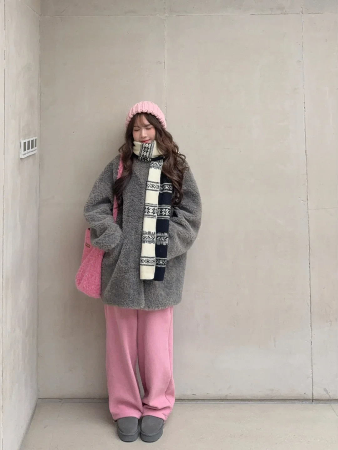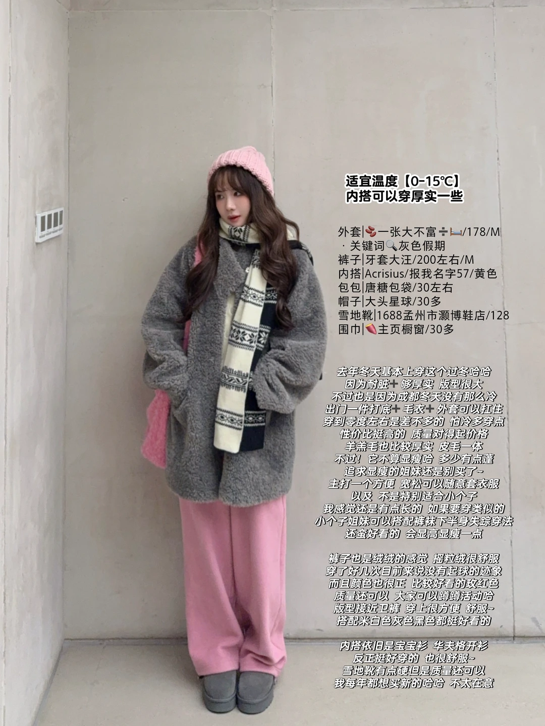 168/104左右 【敞怀是为了展示内搭 有扣上扣子的图】 【仅提供穿搭思路 纯分享 理性种草~】 灰色羊羔毛外套虽迟但到哈哈哈 其实去年私底下出门经常穿这件 特别厚实方便 而且扣子一扣 也很防风 不过一分价钱一分货 谈不上非常有质感毕竟聚酯纤维 但是!这个性价比还是不错的 南方地区穿这个过冬都没啥问题 北方姐妹抗冻的可以穿羊毛打底衫➕毛衣 我感觉穿到零度左右也是可以的 灰色很耐脏!同理棕色/黑色/米色的羊羔毛外套 鞋子呼应一下 也可以搭配 一样的思路~ 依旧是不会冻到一点🫰🏻!!