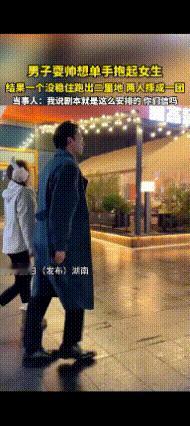 第一眼,好帅,单手抱女生 第二眼,男友力爆棚,单手抱起还在跑 第三眼,摔倒了,高估自己了吧 笑不活了,短剧看多了,中毒不浅。没抱稳就跑了,然后帅不过三秒。好一个惯性摔,四脚朝天,和大地来了个亲密拥抱。 还死鸭子嘴硬,非说剧本就是这么安排的!是,是,我信,剧本的名字叫《单手霸总爱上耐摔的我》。