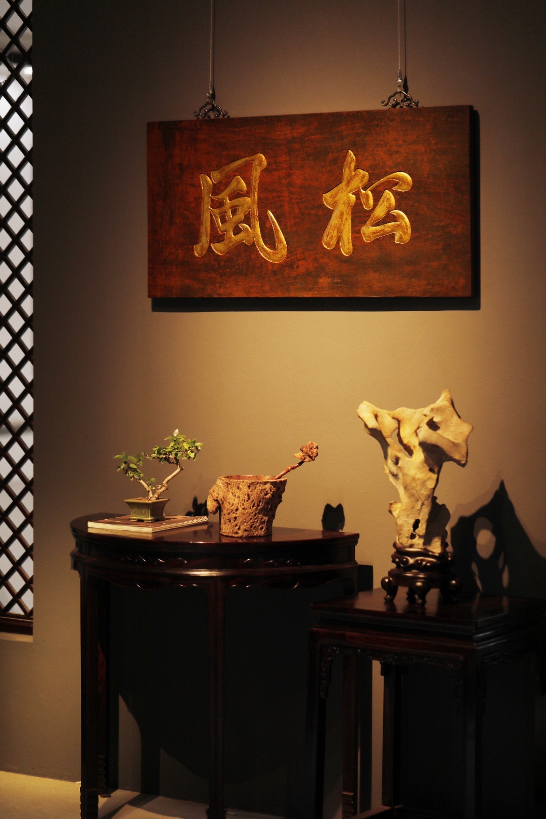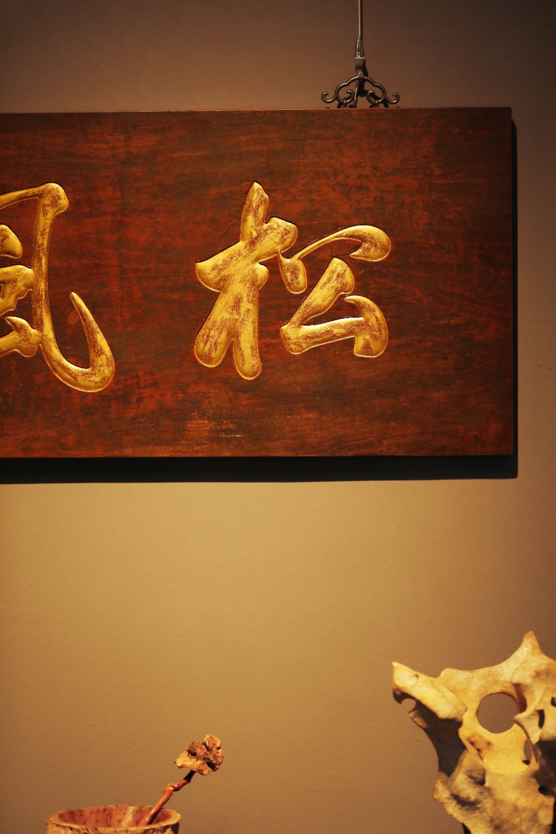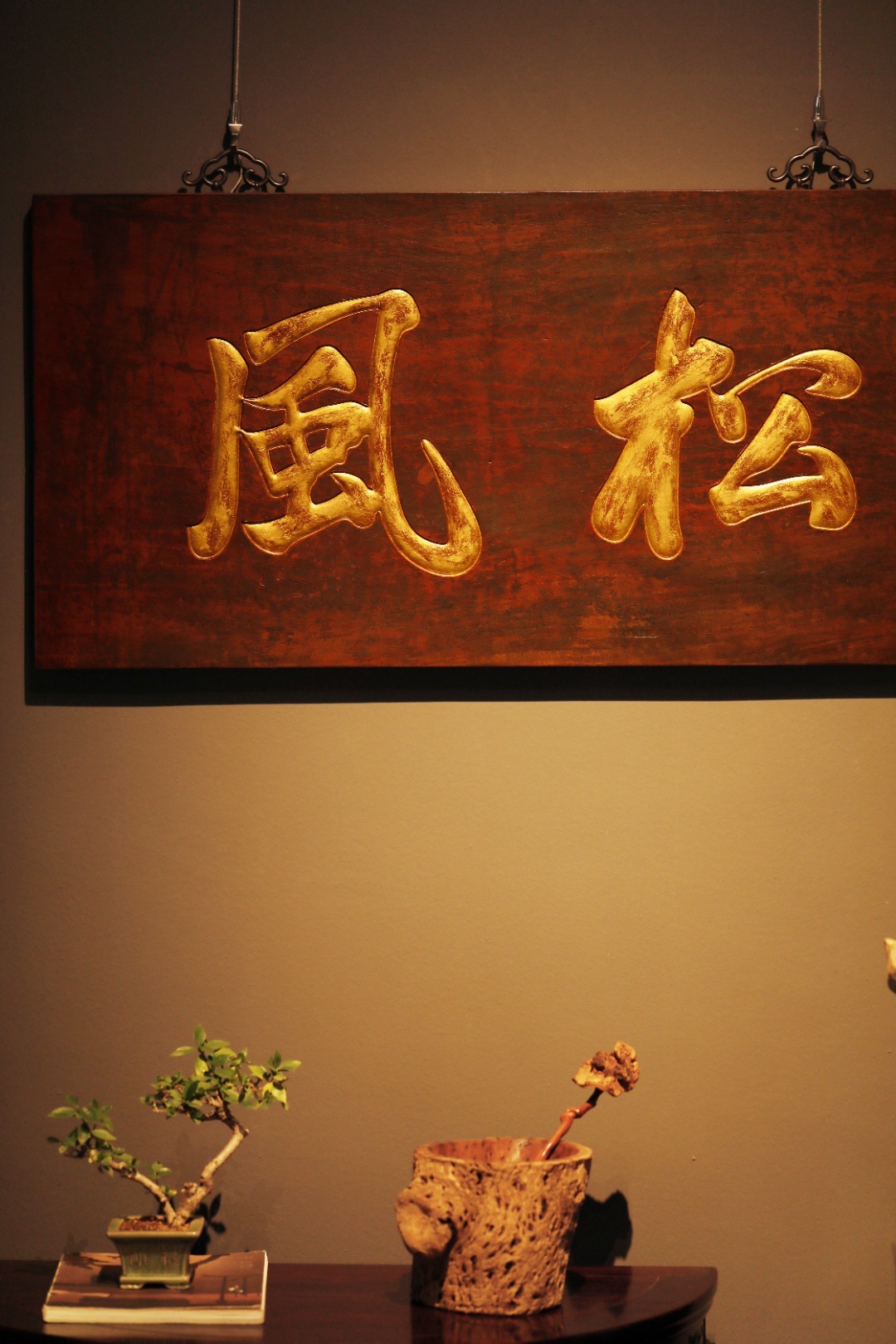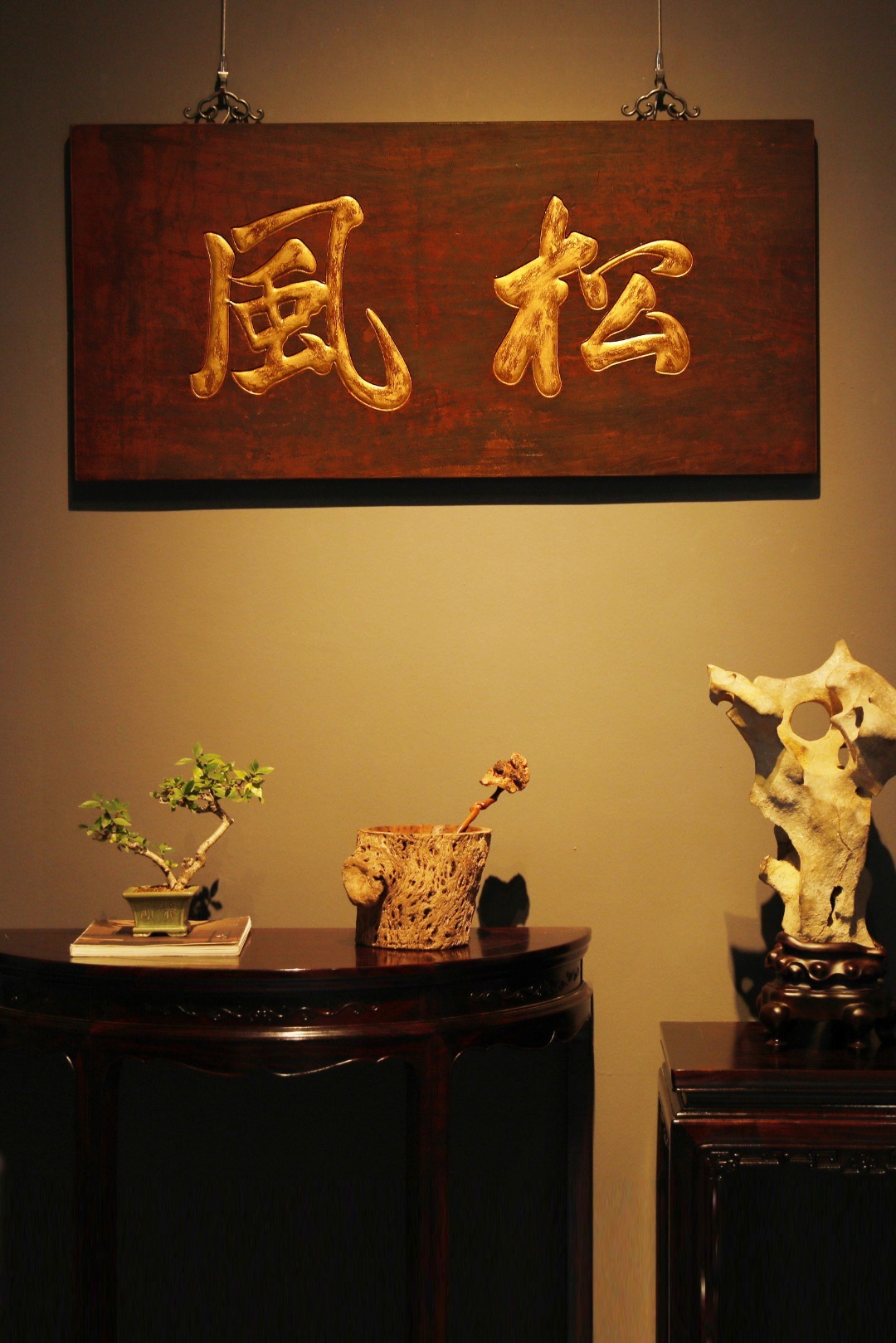 老楠木x金箔 | 松风 匾额老楠木新作,形制典雅,题字“松风”,手工刻画,陈置厅堂文房,可添静雅之韵。103*49.5*2cm 重17.3斤