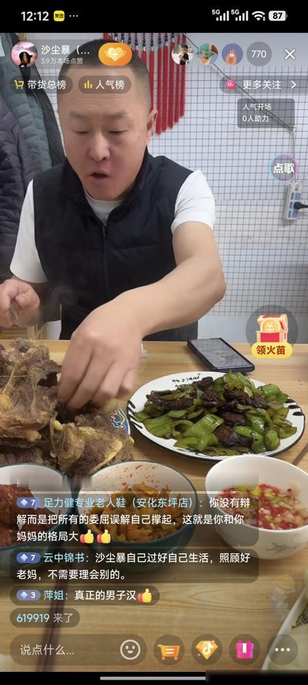 我为啥力挺小叔子和婆婆?今天一直在小叔子卖牛羊肉的直播间,有的黑粉过来怼小叔子说小敏小敏怎么的? 这话听着就憋屈。小县城巴掌大,谁家有点事,转头就传遍街坊。能挺直腰板重新做人,得多难。黑粉轻飘飘几句话,又把旧伤疤撕开,搁谁受得了。 翻了些网友讨论,大概知道背景了。家里之前好像出了挺大的变故,具体细节外人说不清。但小叔子那句话实在,“没让他们饿着冷着要饭”。这就够了。过日子,最难的时候不就是一口热饭、一件暖衣吗?他扛起来了,没让嫂子侄儿流落街头,这就是爷们儿的担当。 直播卖肉,挣的是辛苦钱。良心肉,对得起顾客。这就比网上那些光动嘴皮子、扒人隐私的强太多。他的脸面是自己一斧子一斧子砍肉、一天一天守摊挣来的,不是靠卖惨换来的。有些人总爱站在道德高地指指点点,可人家关起门来的苦,你吃过吗?他让侄子对外说爸爸叫李洋,这心思得多重。是想护着孩子那点自尊,不想让孩子在别人异样眼光里长大。 网络有时候真挺伤人。过去的事,好不容易平息,一场直播又给掀出来当戏看。看客们图个热闹,可当事人呢?每被提起一次,就像重新经历一次。婆婆那么大年纪,还得对着镜头被问想不想孙子,心里啥滋味?将心比心吧。 家里的事,从来就是一笔糊涂账。清官难断家务事,何况是隔着屏幕的陌生人。我们看到的,永远只是碎片。小叔子选择沉默,不多说,是对的。说多了,反而成了新的谈资。他现在的郁闷和委屈,太真实了。好人未必有好报,但行好事,有时求的只是自己心安。他信不过“老天爷帮忙”那句话,是因为他靠的是自己这双手,不是飘渺的运气。 一个男人,养家糊口,照顾兄长的遗孀和孩子,让老母亲晚年不至于太凄惶,他已经做到了他能做的一切。这比任何漂亮话都硬气。他的尊严,就藏在每天清晨搬动的牛羊肉里,藏在每一笔实实在在的收款里。外人凭什么质疑? 挺他,不是因为他完美无缺。而是因为,在生活的泥潭里,他没有趴下,而是选择扛着这个家往前走。这份坚韧,就值得尊重。网络的风暴总会过去,日子还得踏踏实实地过。卖好他的良心肉,照顾好身边的人,时间会给出最公正的评价。咱们普通人过日子,图的不就是个问心无愧,踏踏实实吗?这就够了。
