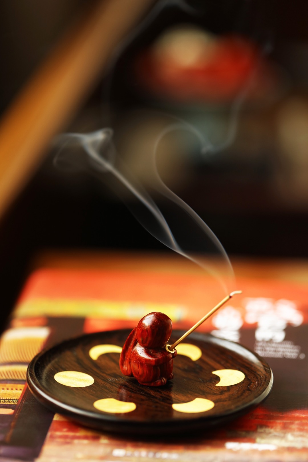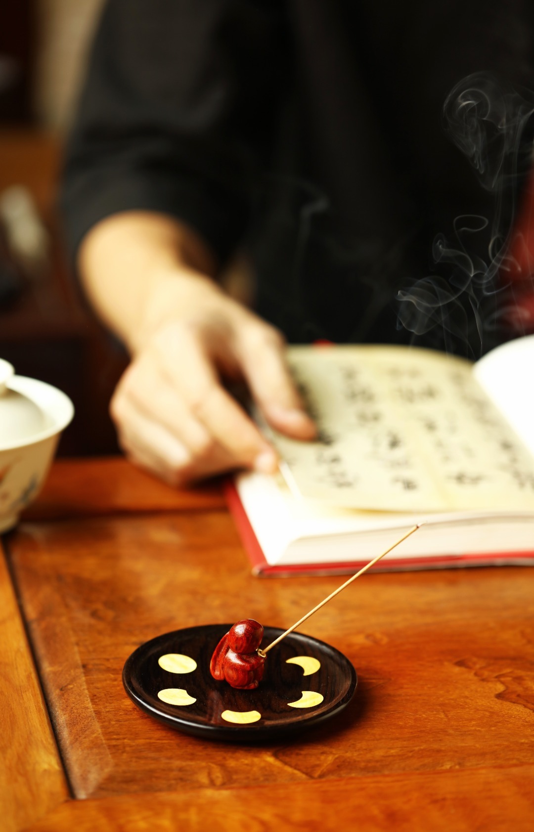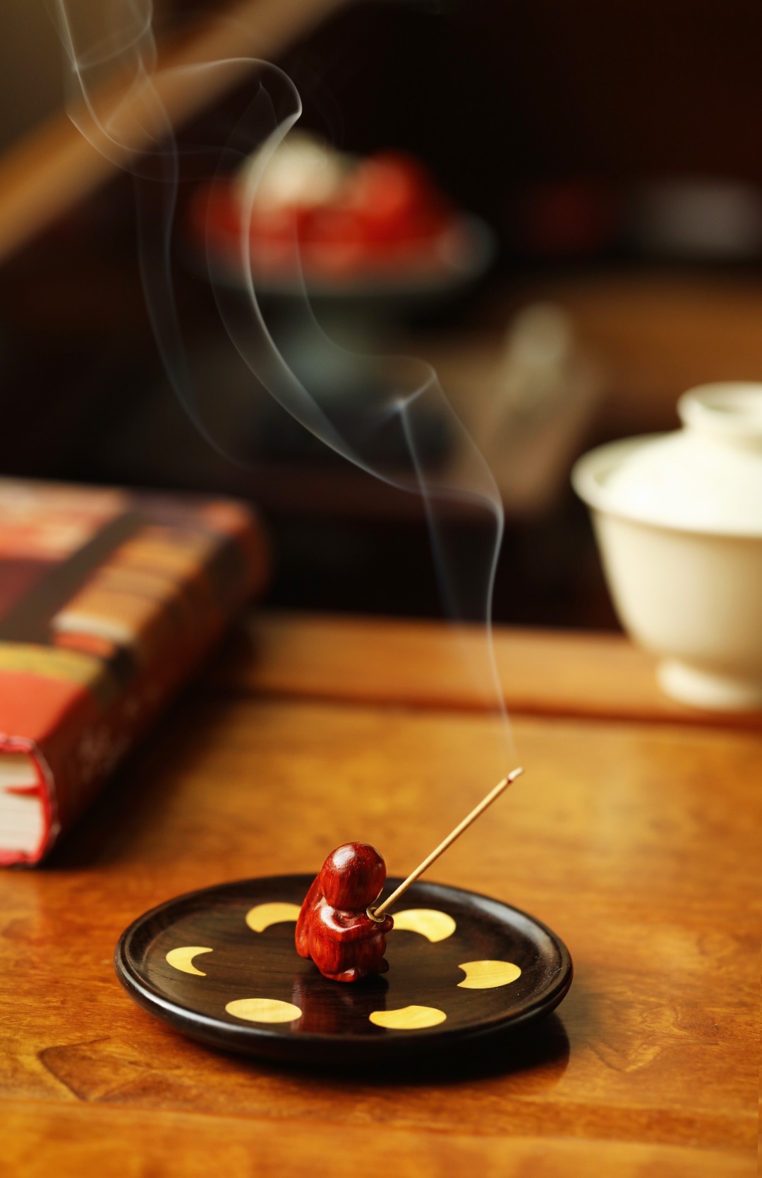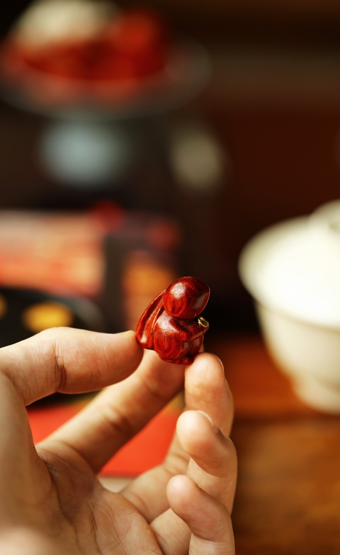 望月玉兔 | 香插月有阴晴圆缺,做一轮皎月,愿常相伴。小叶紫檀玉兔,底座紫光檀镶嵌黄杨木,以月食为题材。玉兔举香,莹润可爱,置书案燃香,足增清趣。9.8*9.8*3.5cm 小叶紫檀【望月玉兔】香插