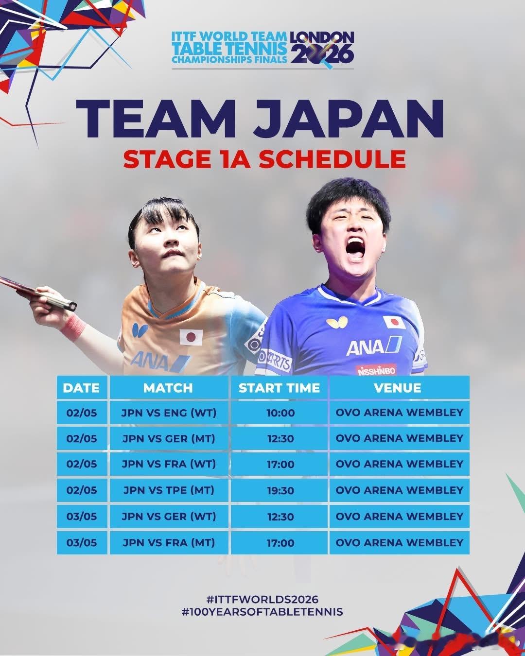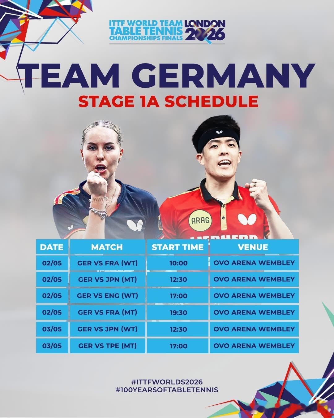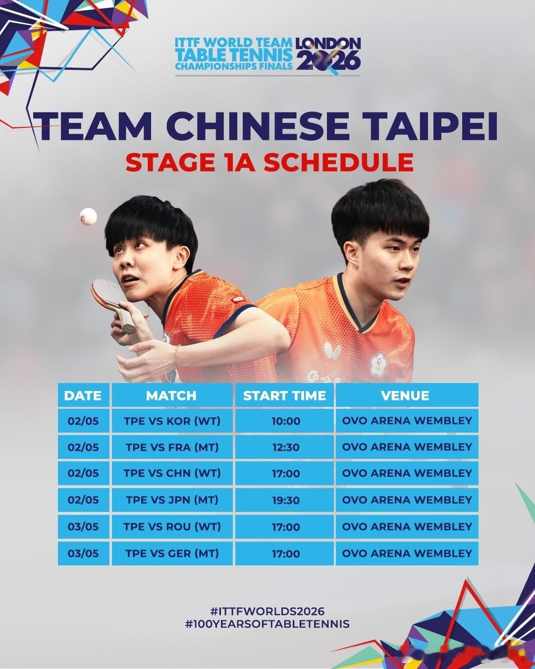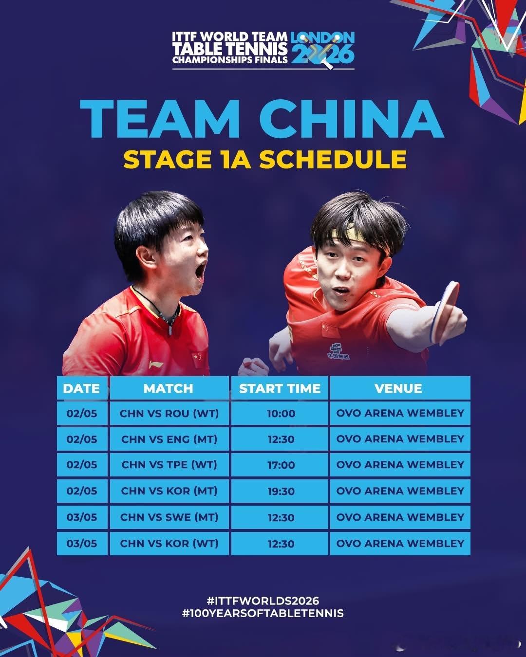 伦敦世乒赛团体赛 女子、男子团体小组赛A阶段赛程正式公布🇨🇳中国、🇸🇪瑞典、🇰🇷韩国、🇯🇵日本、🇫🇷法国、🇩🇪德国、🏴英格兰、中国台北、🇷🇴罗马尼亚