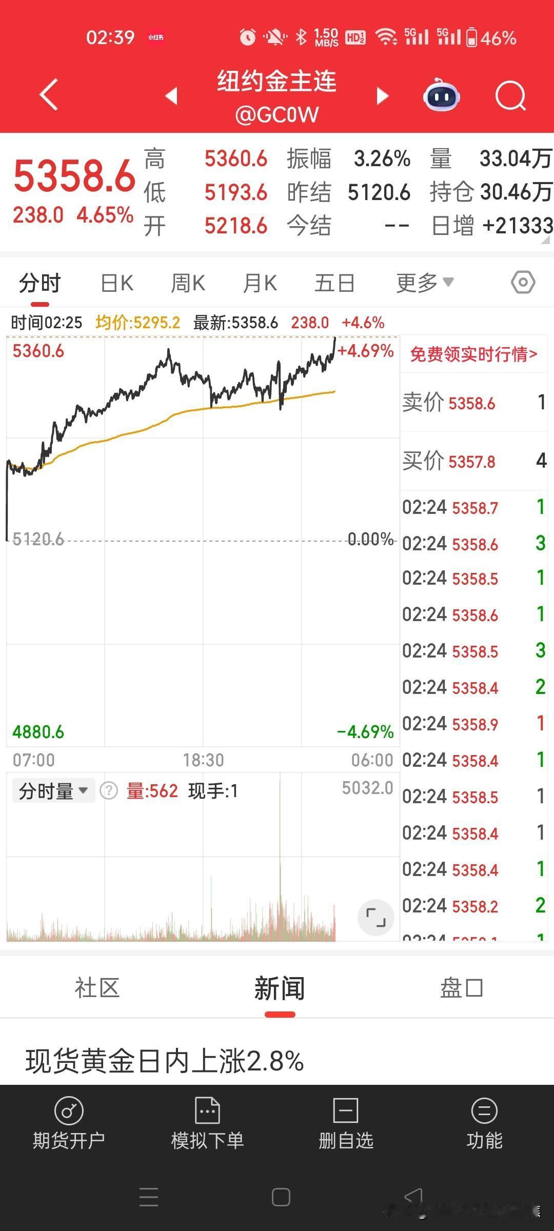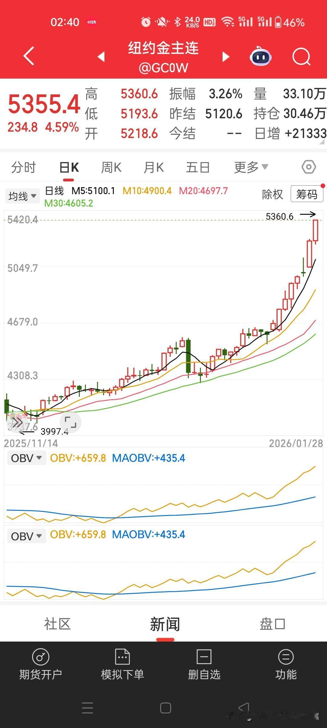 今夜黄金市场那叫一个刺激!黄金价格一路狂飙,直接创出了5360.6的新高。这可苦了那些做空的人,不少空头都爆仓了。 想象一下,那些押宝黄金价格下跌的投资者,满心期待着市场如他们所愿,结果却被这不断攀升的金价打得措手不及。爆仓就意味着血本无归,这种滋味肯定不好受。 现在这行情下,还敢做空头,那真跟找死差不多。市场走势就像脱缰的野马,谁也不知道它下一步会跑到哪儿。只能说,投资有风险,入场需谨慎啊,尤其在这种极端行情里,得时刻保持清醒。