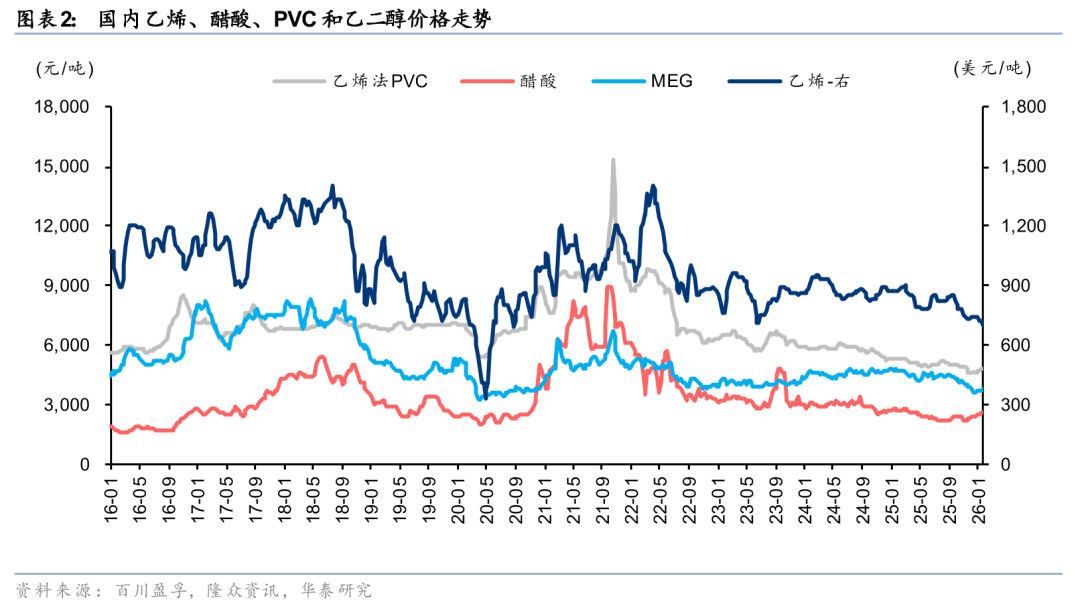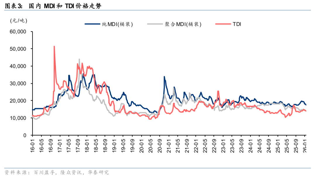 参考华泰石油与化工团队2026年1月18日发布的研报《大宗化学品正处于双周期拐点》,我们认为国内大宗化工品行业自2025H2开始已步入产能周期拐点,且库存周期亦处于补库拐点,2026Q2伴随内外需逐步修复,油价下行预期消退,行业有望进入盈利修复。我们认为因美国寒潮导致的海外供给潜在下滑,或加速国内相关化工品开工率提升和景气改善,尤其是炼油、乙烯、醋酸、MDI、TDI等美国本土产能占比较高的相关品种,同时炼油、烯烃等产业链下游产品亦有望受益,如乙二醇、聚烯烃等。