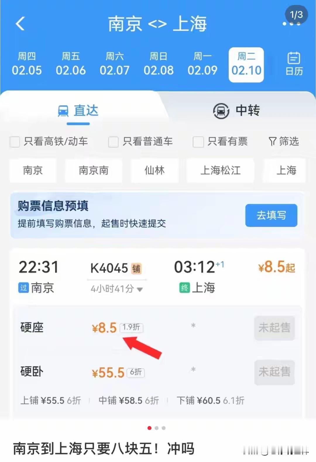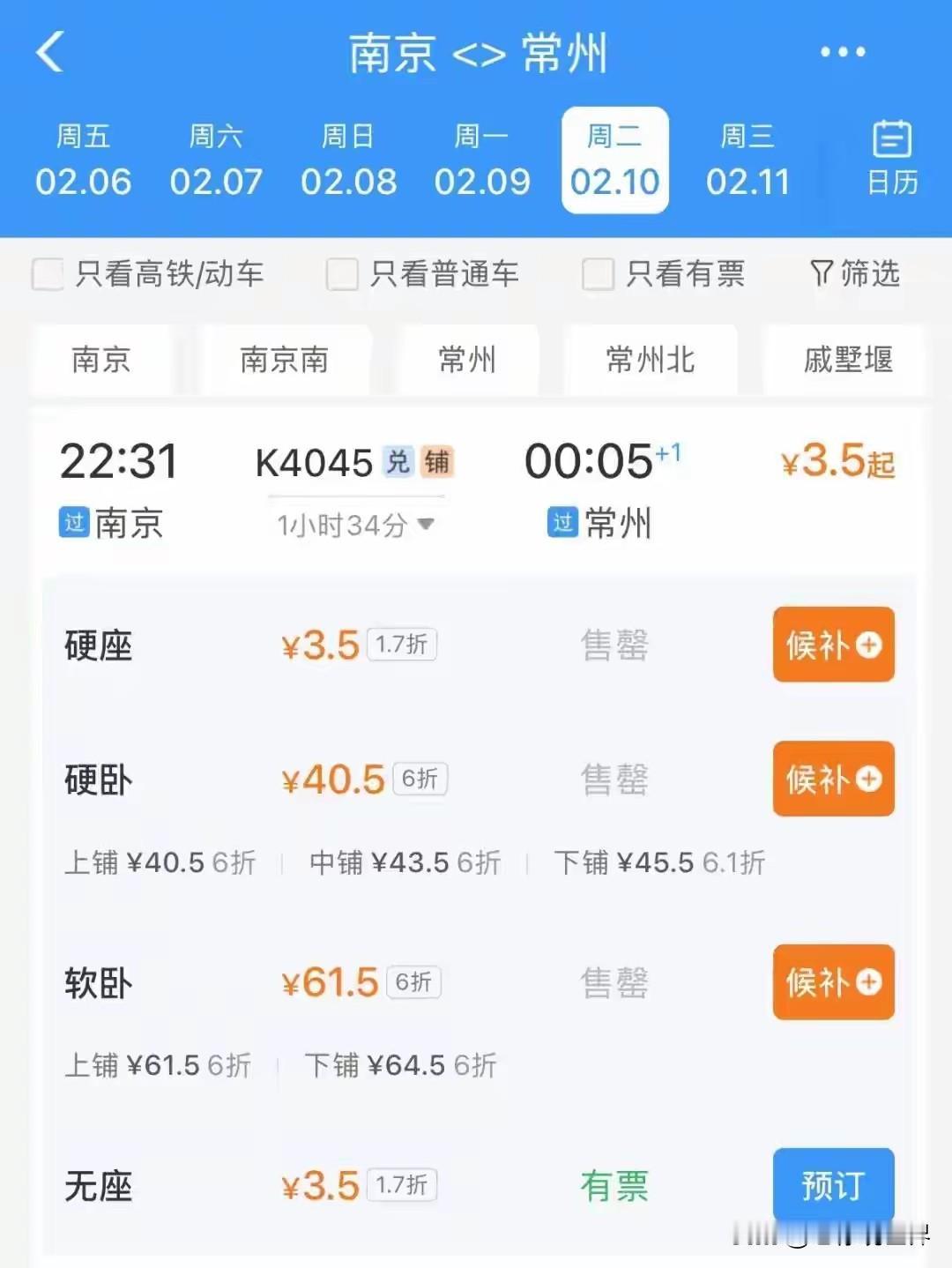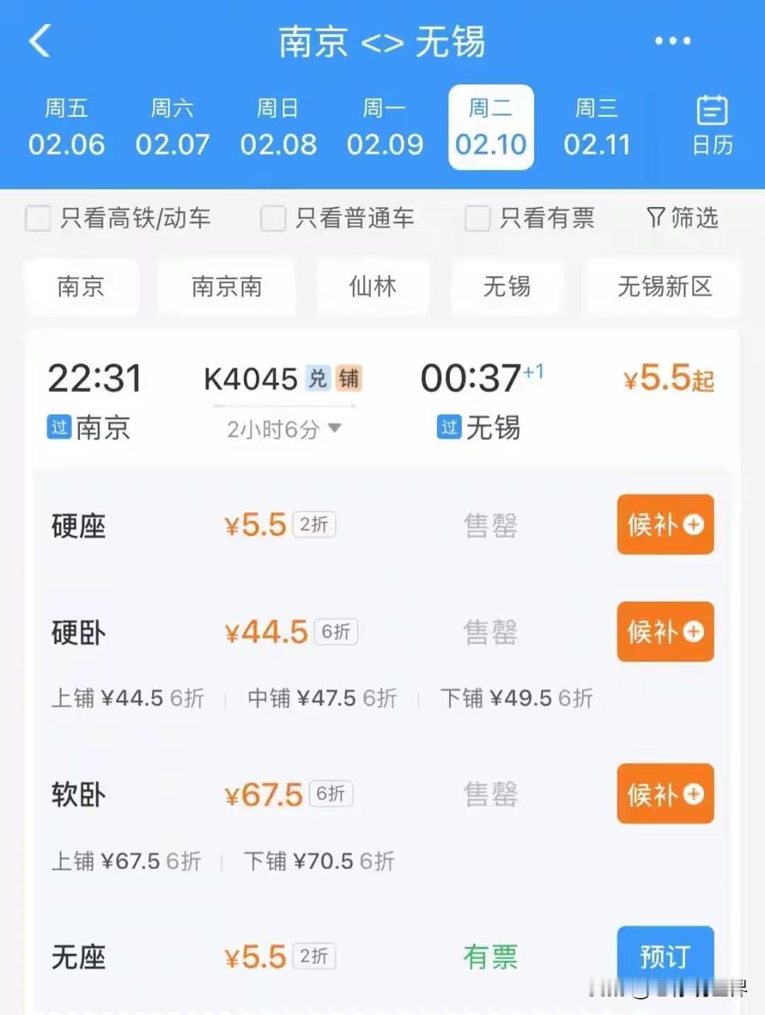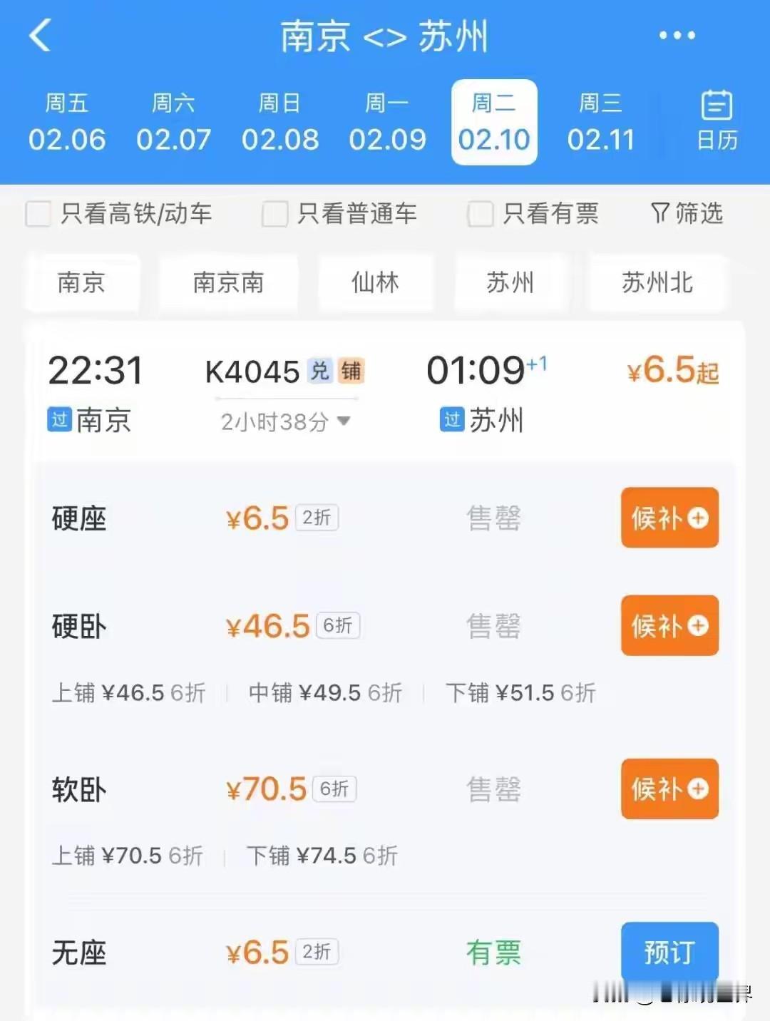 真是看不懂了,一方面是一票难求秒杀候补,另一方面多地惊现1.7折个位数票价! 市场化定价可以理解。但是春运期间明明是到处火热啊,南京到无锡,这也算不上反向春运啊!火车票最低竟然只要5.5元!候补火车票 候补抢票攻略 候补购票机制 候补票 候补预约 候补车票退款 南京站抢票