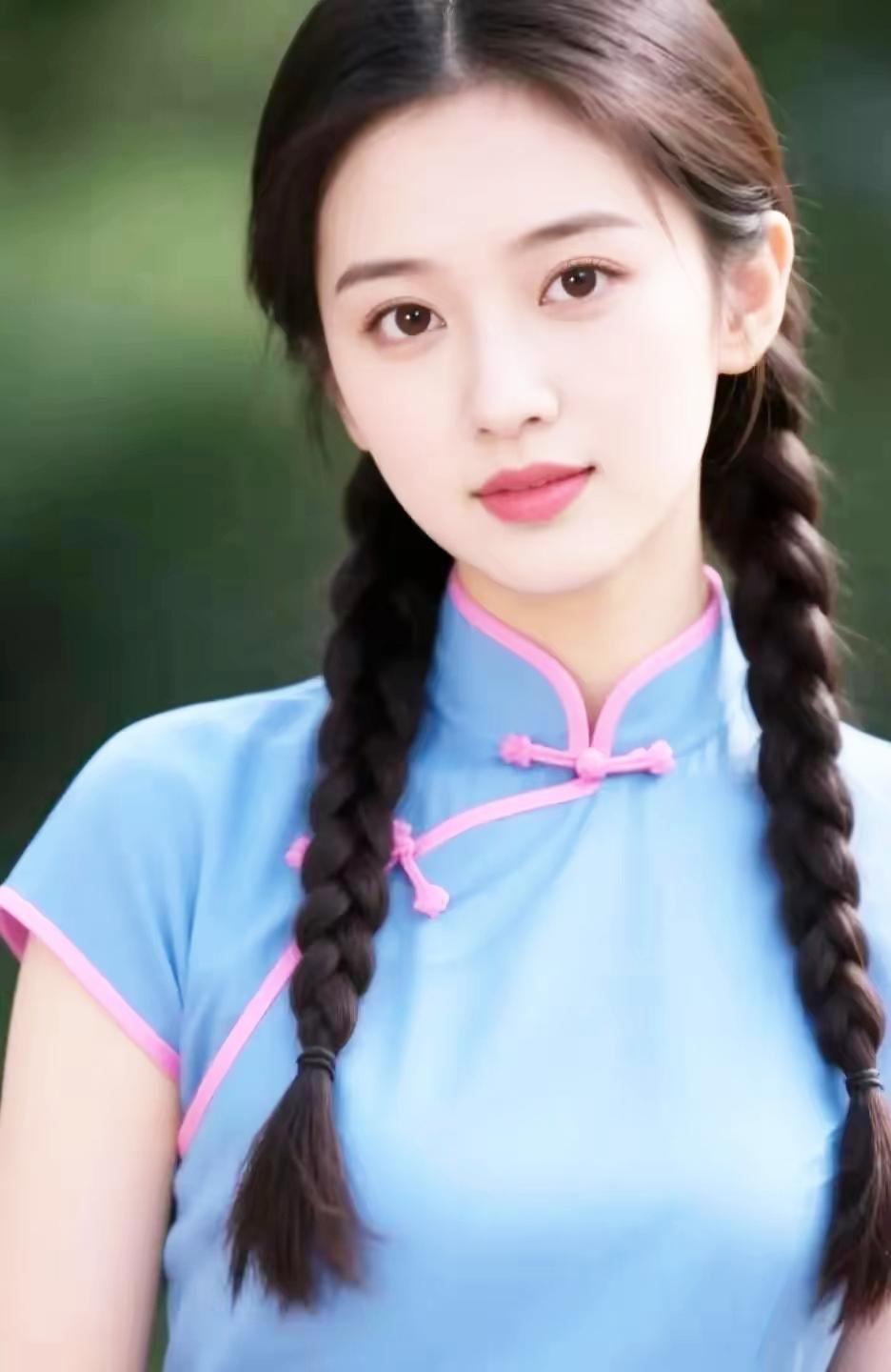 清新少女风,蓝色旗袍搭配粉色细节,优雅动人!🌸💕
