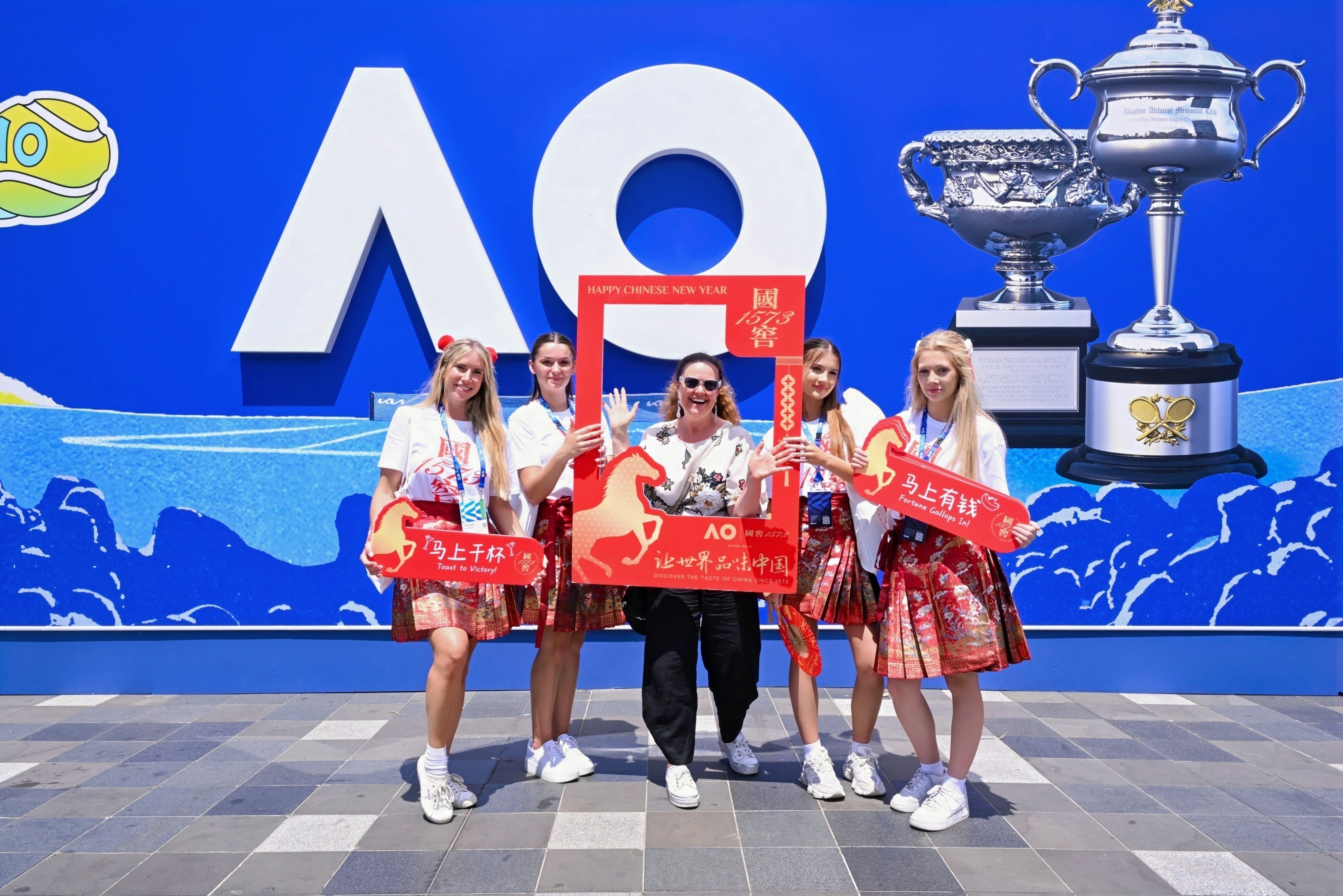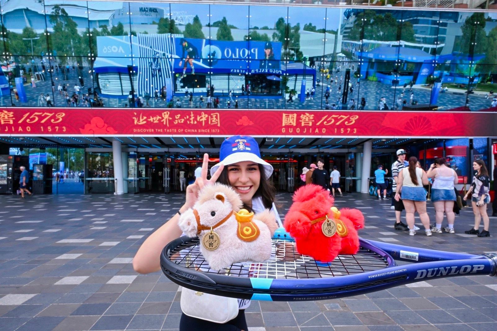 澳网2026 马年即将到来,外国礼仪小姐姐身穿马面裙、手持“马到成功”“马上涨球”等手举牌,成为现场拍照打卡点。这波文化输出不要太优秀哦👍“马上干杯”“马上有钱”“马到成功”“马上涨球”,大家最想拥有哪个?我先来:马上涨球!