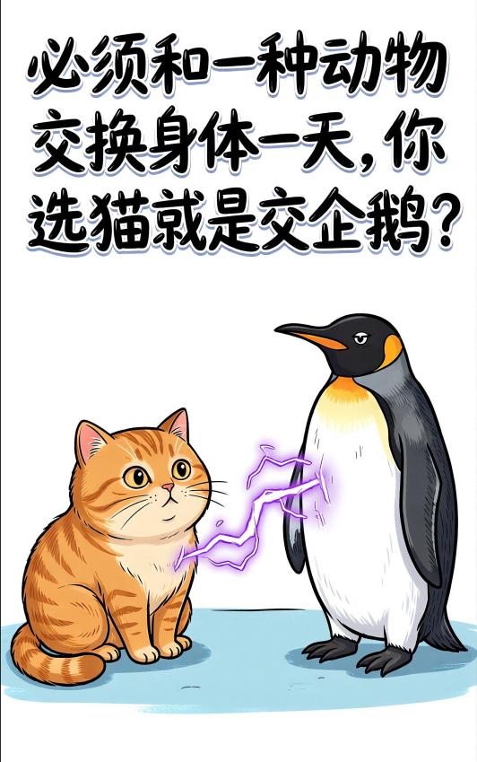 假如必须和一种动物交换身体一天,你选猫还是选企鹅?