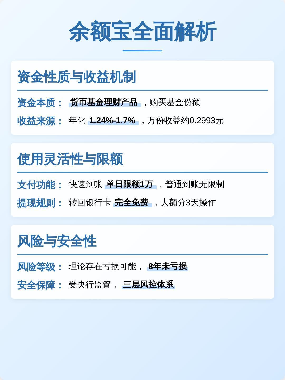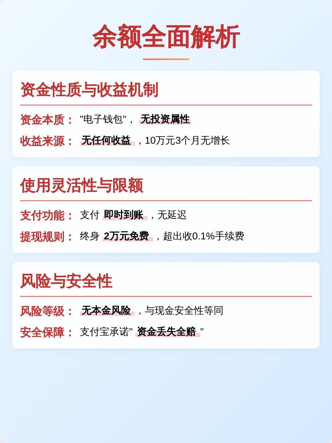余额宝的收益就是我的创意费了 余额就是支付宝里的现金,存在电子钱包里,不会自己变多,但随时能花。余额宝是把钱转成货币基金,钱会去买国债、存银行这些安全项目,属于理财性质。这些理财知识,有必要了解一下。