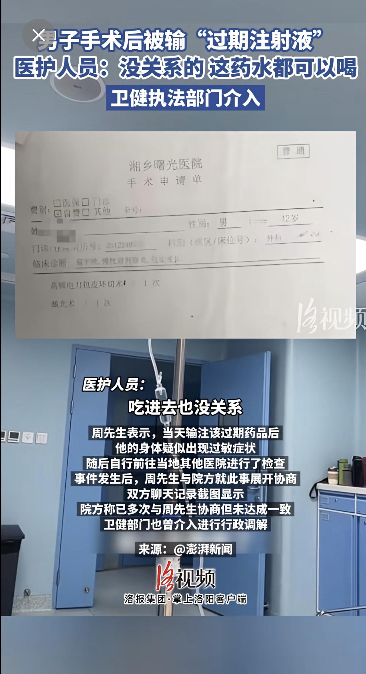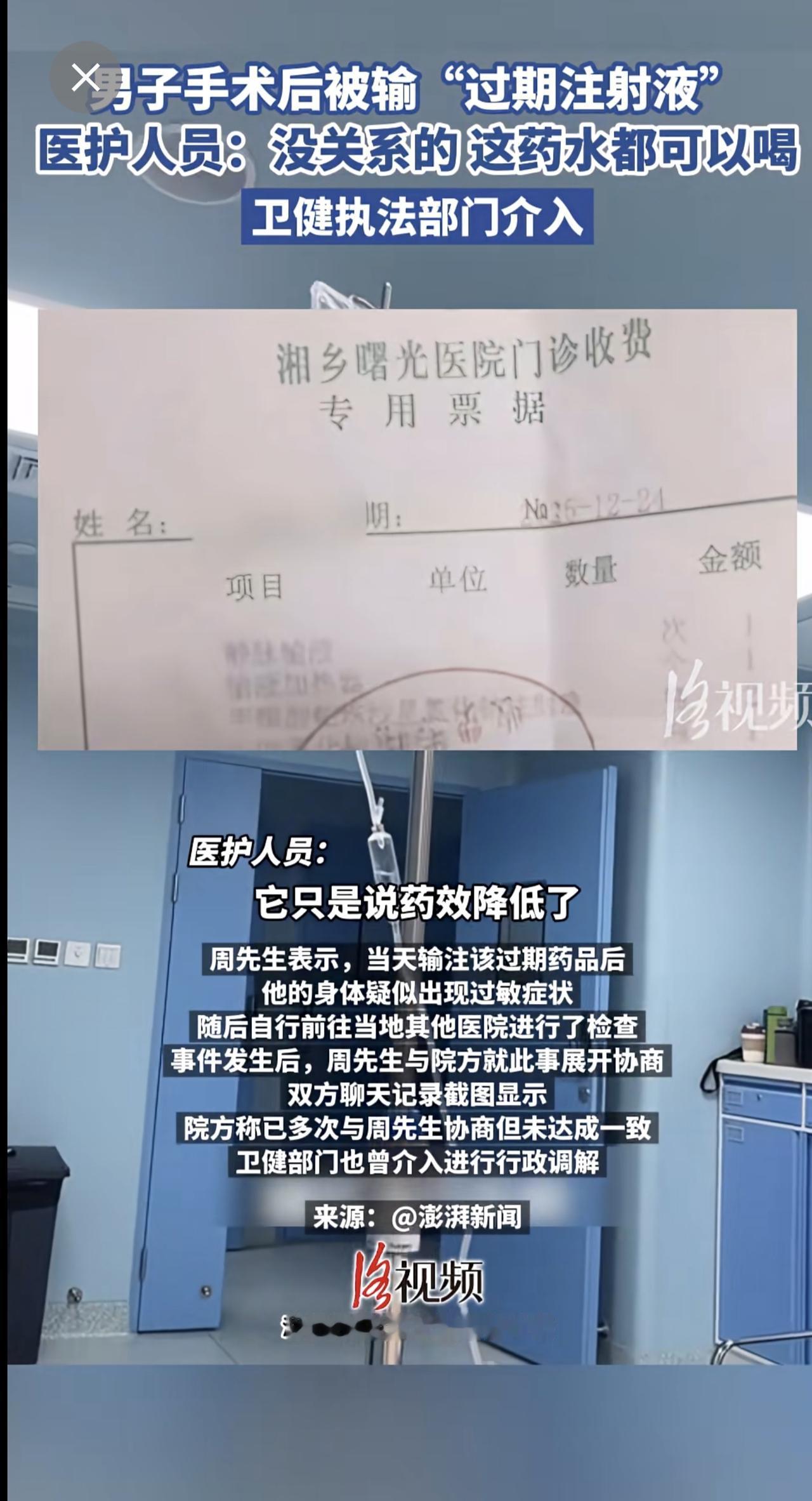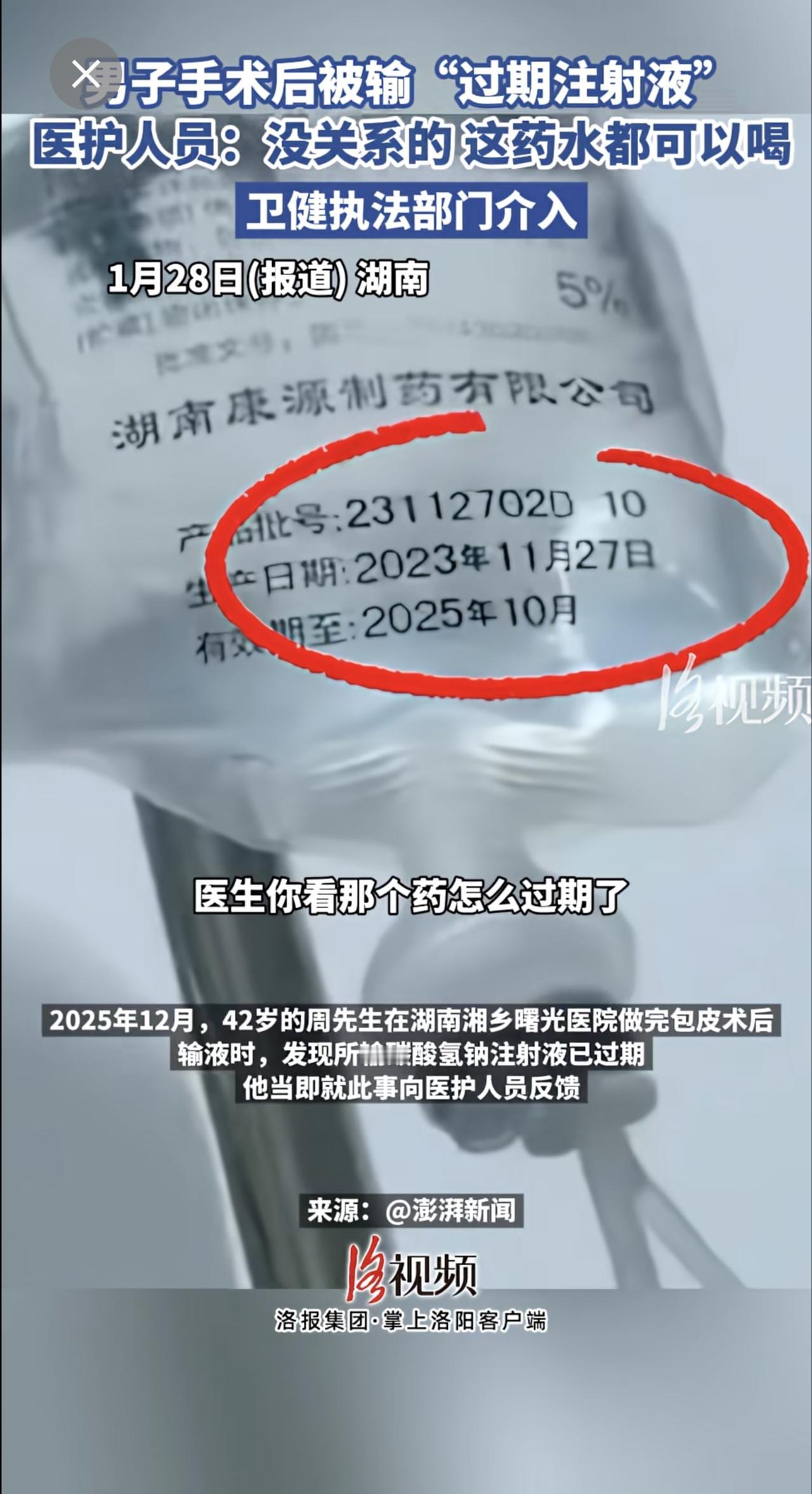 男子手术后被输“过期注射液”,医护人员:没关系的这药水都可以喝。
