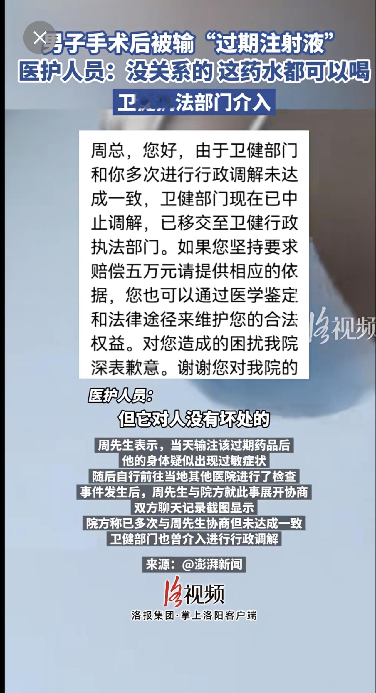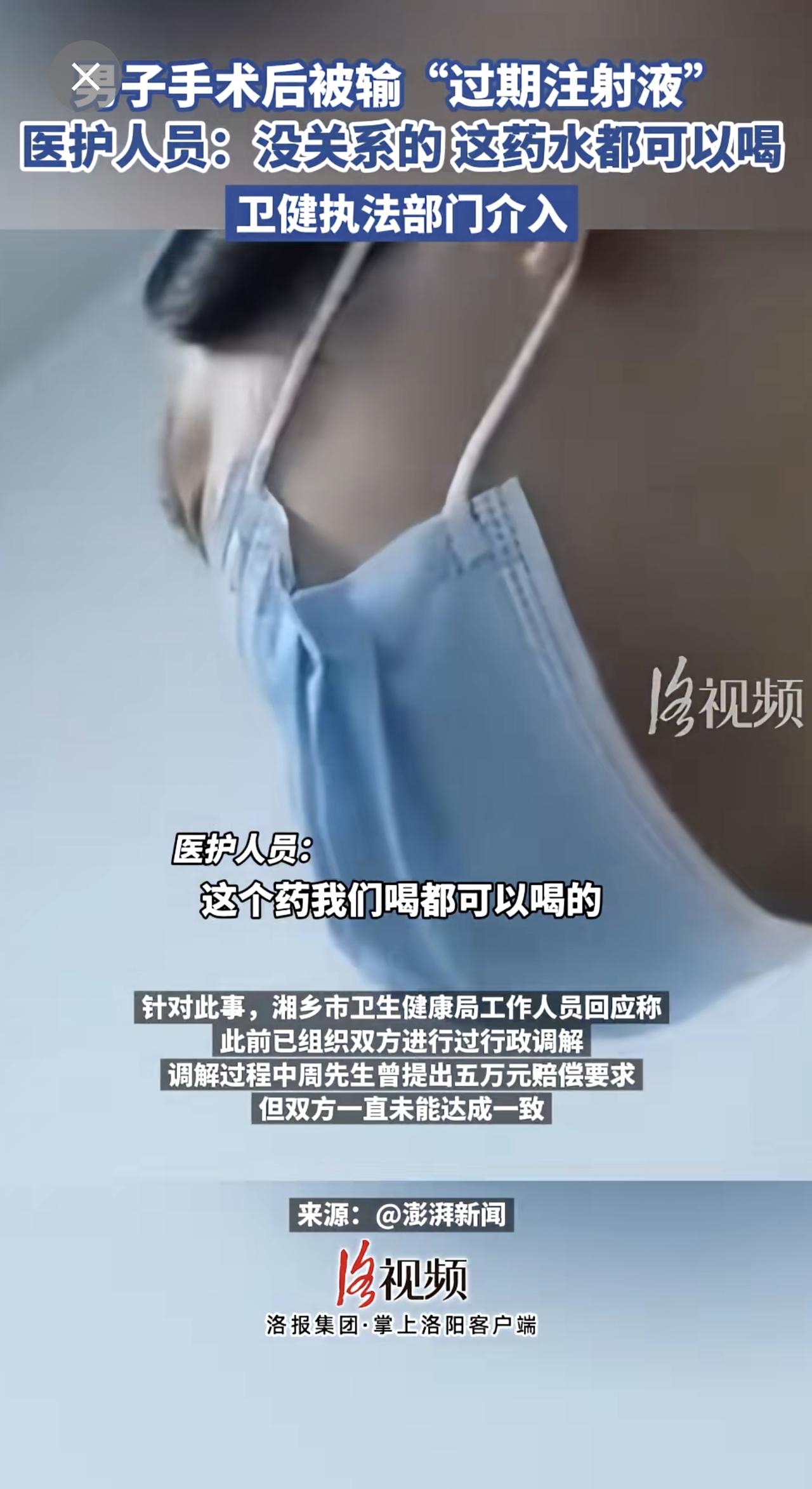 男子手术后被输“过期注射液”,医护人员:没关系的 这药水都可以喝。