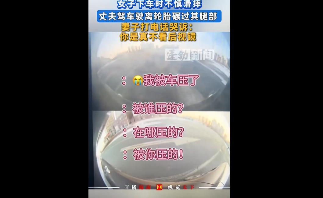活久见! 女子下车摔倒被丈夫开车碾过! 1 月 25 日,辽宁。一女子下车因地滑摔倒,丈夫驾车离开时未察觉,车轮碾过其腿部。 女子致电丈夫告知实情,丈夫才急忙返回。经医院检查,女子腿部无骨折,万幸没有重伤。 这场荒唐又惊险的意外,看似是地面湿滑导致的巧合,实则戳中了驾车起步前的安全盲区与夫妻间的粗心大意。 妻子下车,路面滑溜,最起码看看妻子安全下车了没。而这位丈夫倒好,根本不管不顾,只管驾车,完全没有观察车辆周边环境,起步驶离时更是毫无警惕,才酿成碾压妻子的闹剧。 若是路面情况更复杂、伤情更严重,后果不堪设想。 不少司机起步、倒车只看车内仪表,忽视绕车检查、观察后视镜的基本操作,把安全准则抛在脑后。看似小事,却暗藏致命风险。 再说,夫妻同乘更应相互留意,驾车起步的安全流程绝不能省。驾车驶离时跟妻子打个招呼也是正常的吧? 这个男人似乎做得太差劲了!