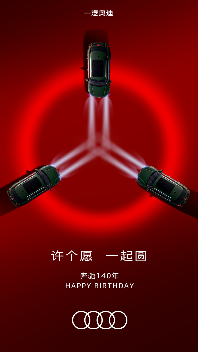 奥迪祝奔驰140岁生日快乐这种日子肯定少不了奥迪今天是奔驰140岁生日