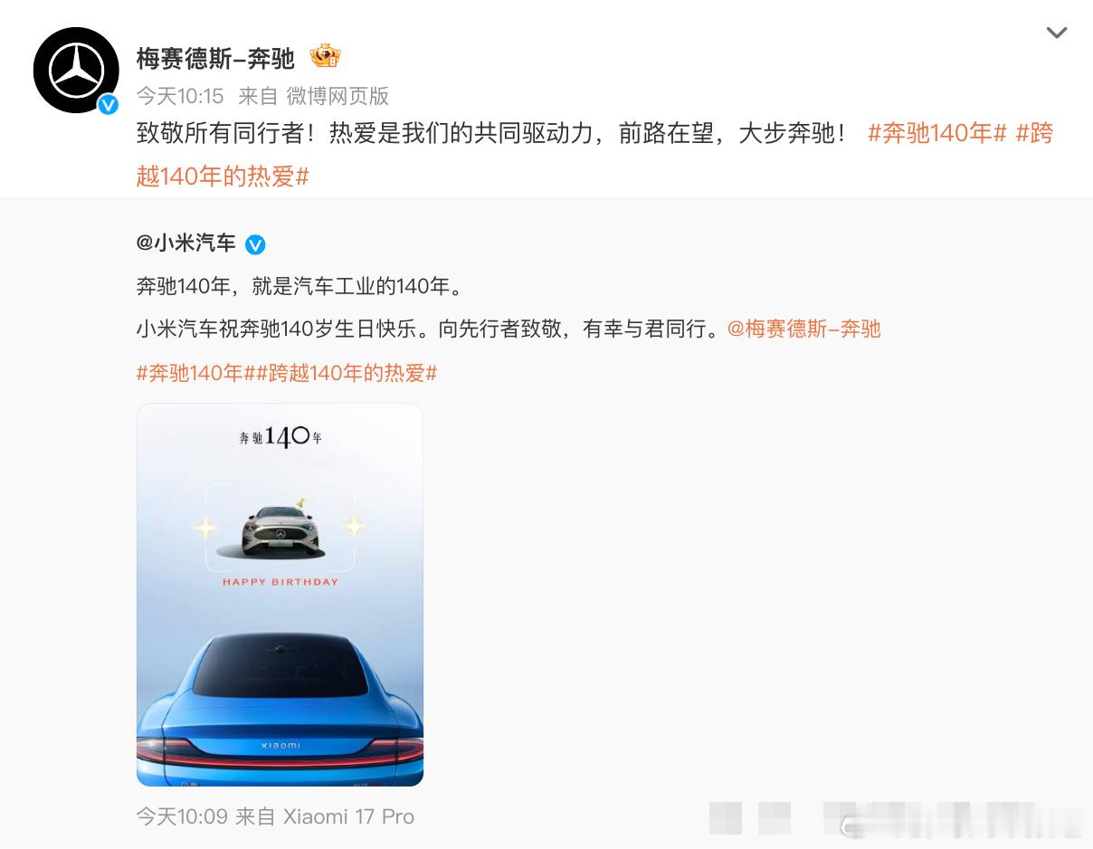 胖哥汽车频道奔驰140年 生日快乐🎂小米汽车祝福奔驰140年
