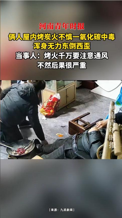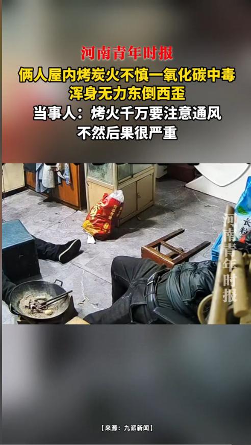 “悲剧还是发生了!”1月28日,浙江绍兴,俩男子在室内烤火取暖,连续烤了5小时后,双双一氧化碳中毒晕倒,其中一人在挣扎过程中还不慎跪进火盆,所幸最终被及时发现,在门口坐了约40分钟才恢复行动能力!网友:室内烤火,通风真的太重要了! 冬季气温低,不少人会用炭火、煤炉等方式取暖,但是在密闭空间里长时间烤火,就会引发一氧化碳中毒,酿成无法挽回的悲剧。 据媒体1月28日报道,这天天气寒冷,两名男子便在一间仅20平方米的室内架起火盆烤火。为了保暖,他们将门窗紧闭,没有留任何通风缝隙,就这样连续烤了5个小时。 渐渐地,两人开始感到头晕想睡觉,都没有意识到是一氧化碳中毒,仍继续烤火。直到后来,其中一人彻底彻底晕了过去,另一人才意识到危险挣扎着想要起身时,不慎跪进了滚烫的火盆,紧接着昏了过去。 刚好这个时候,两人的朋友及时找来,发现二人晕倒后,就赶紧开窗通风,将两人转移到室外,过了40分钟,两人才慢慢恢复了行动能力,没有发生更严重的后果。 医生提醒,一氧化碳是无色、无味、无臭的有毒气体,在密闭空间内燃烧炭火、煤炉,极易导致一氧化碳积聚,引发中毒,严重时会危及生命。 信息来源:《俩人屋内烤炭火不慎一氧化碳中毒,浑身无力东倒西歪,当事人:烤火千万要注意通风,不然后果很严重》黄河微视