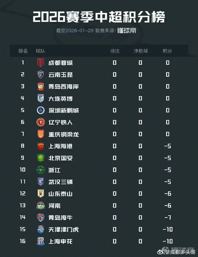 中超9球队新赛季负分起步2026年中超第一个悬念,被罚分的9个队,哪个队会第一个获得0分?