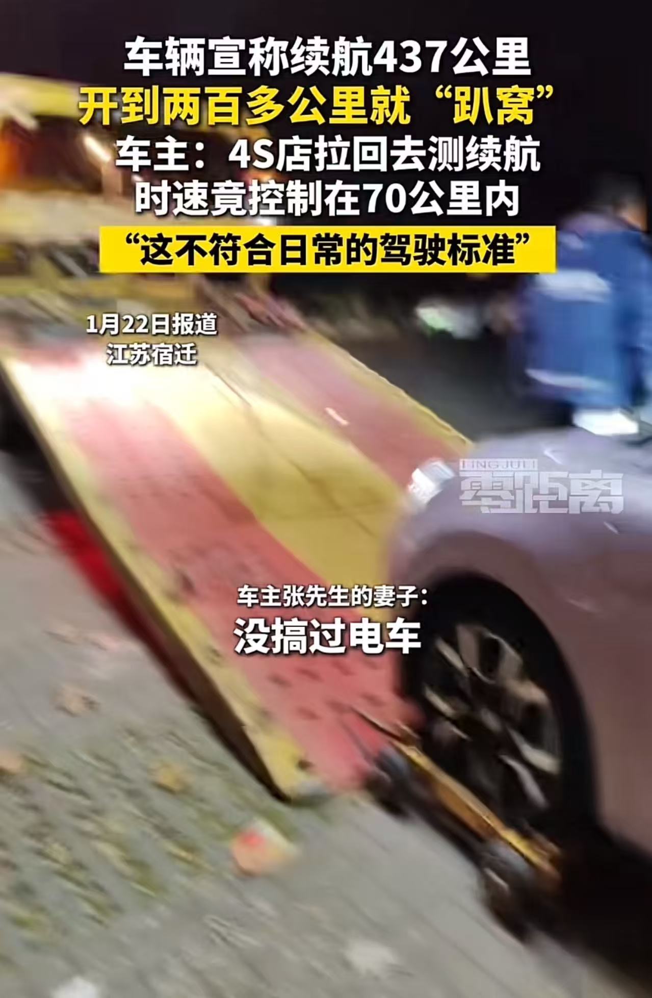 更离谱的是,4S店为“自证清白”,把车拉回去做“续航测试”: