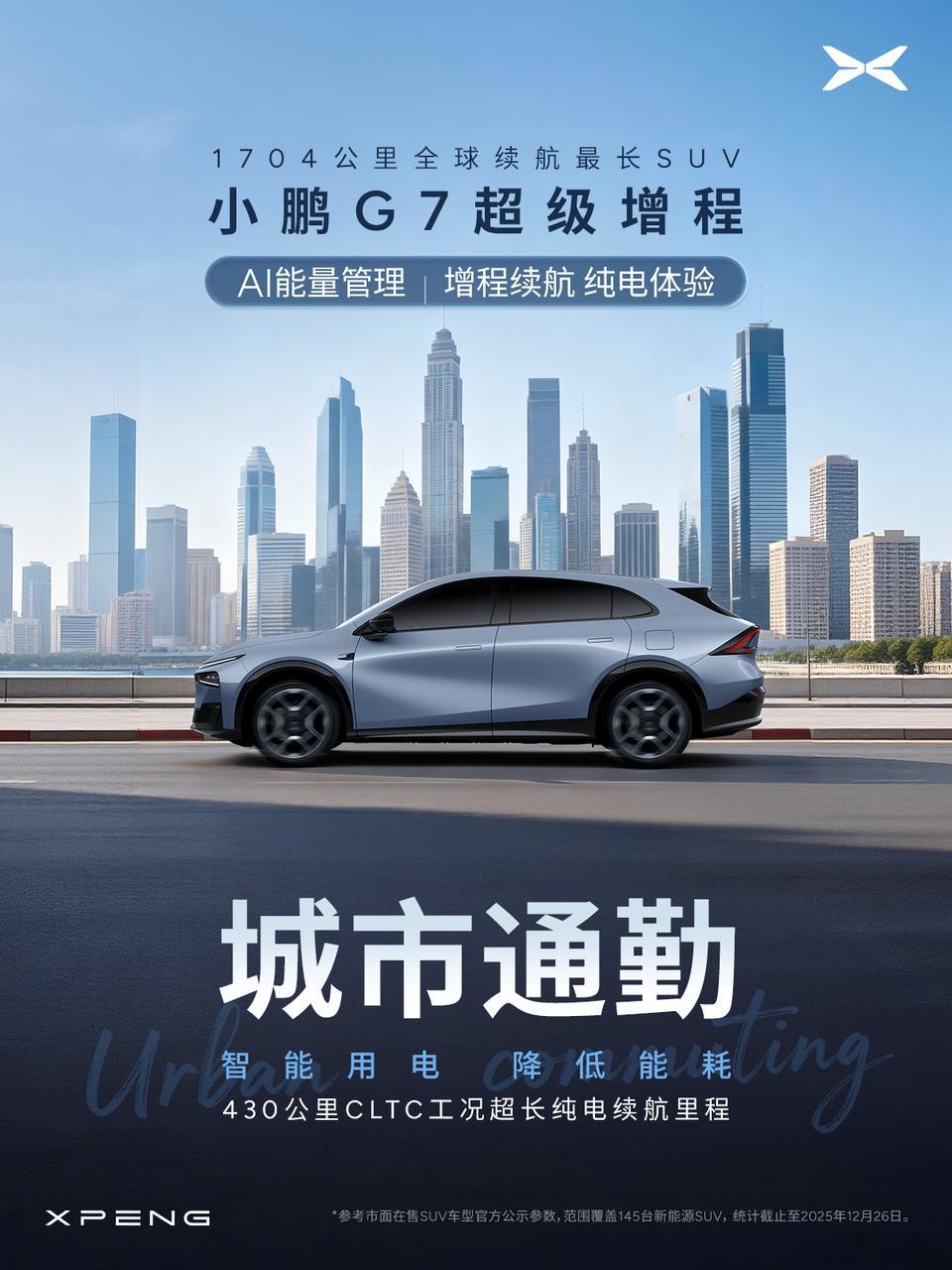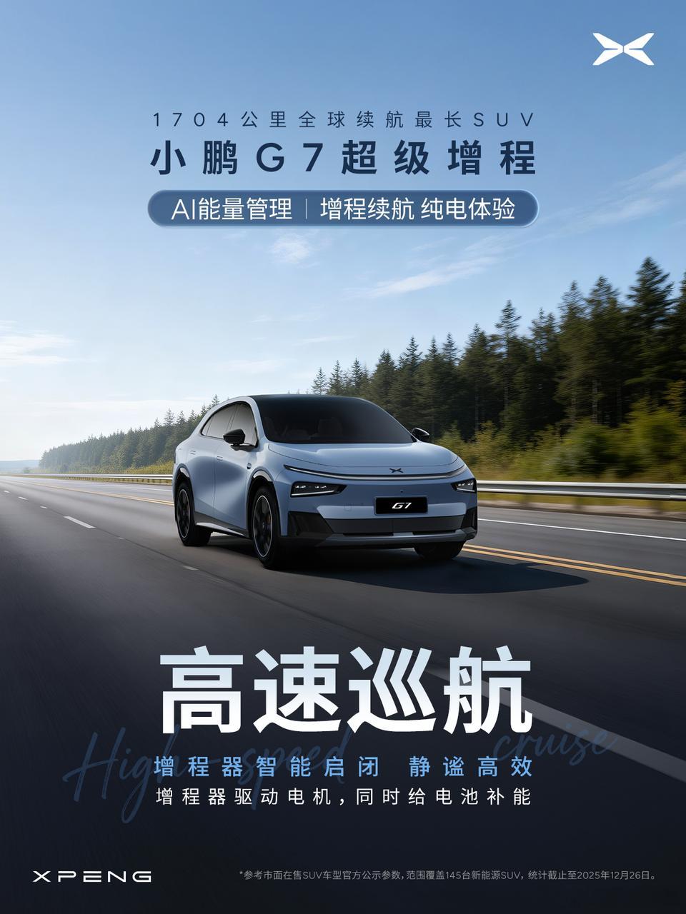小鹏G7增程续航纯电体验开小鹏G7去撒欢玩雪小鹏G7超级增程纯电续航达430km,综合续航更高达1704km;搭载AI能量管理系统,智能预判路况与气候;配备800V高压平台 + 5C超充技术,仅需12分钟就可以补能314公里。小鹏G7超级增程城市通勤第一首选!