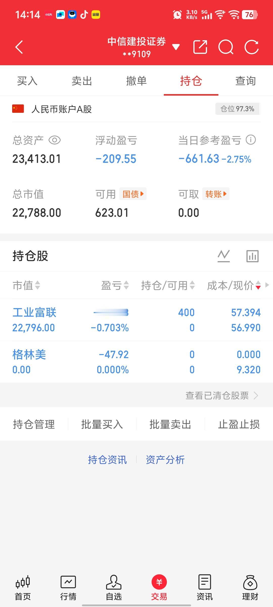 今天不是很好!加仓了通策医疗,买入了奥飞娱乐,重新持仓工业富联!