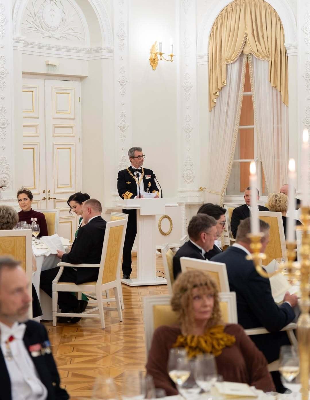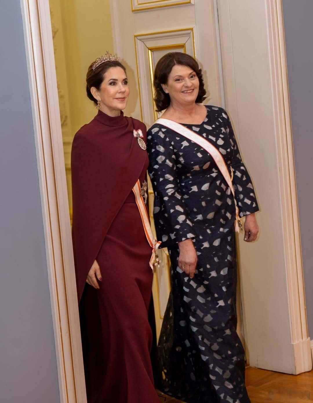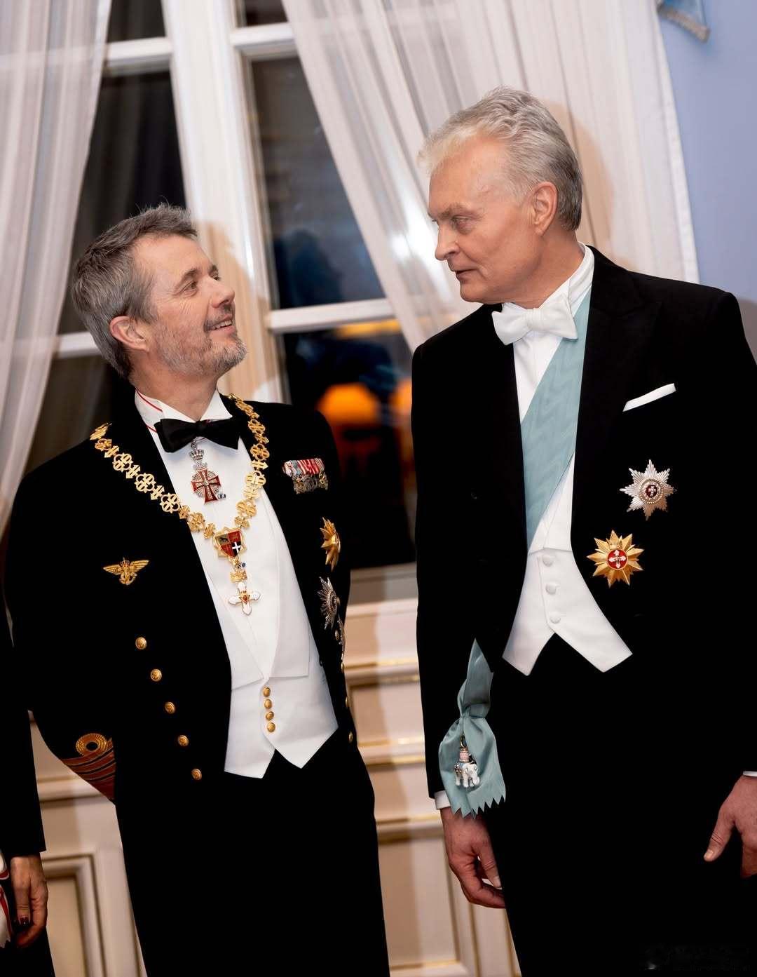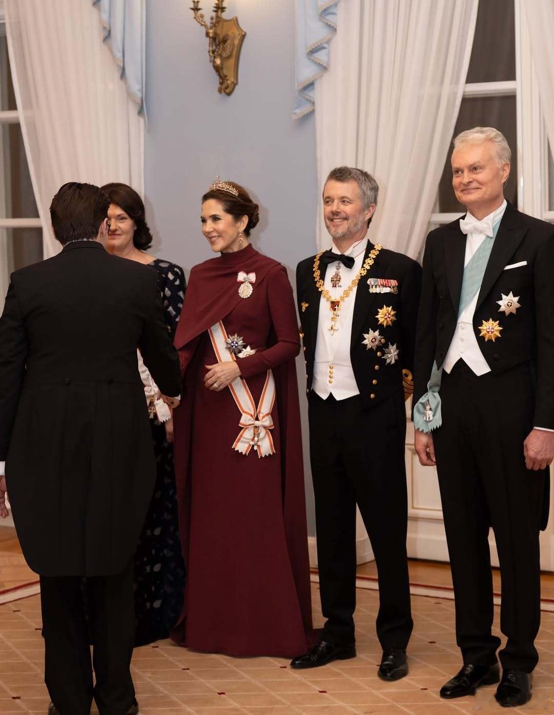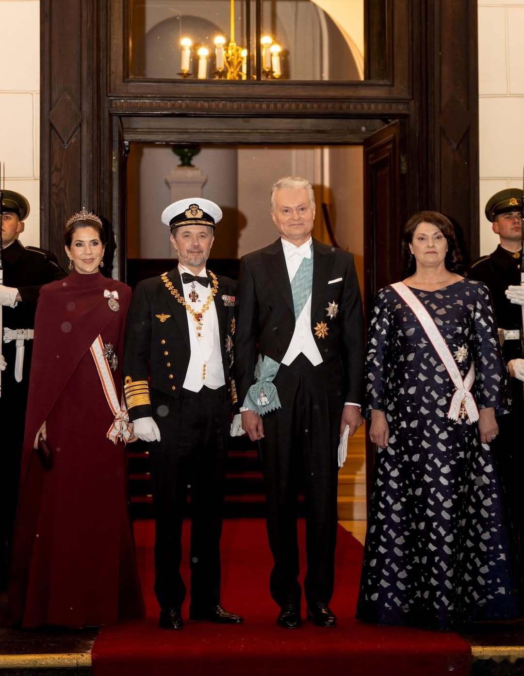 丹麦王室 🇩🇰🇱🇹1月28日,国王夫妇出席立陶宛总统吉塔纳斯·瑙塞达阁下和夫人戴安娜举办的国宴,这身真不错,王冠虽然还是无限重复的钻石项链👑,但是整体造型不错。礼服来自艾丽萨博。世界各国王室王室国事访问