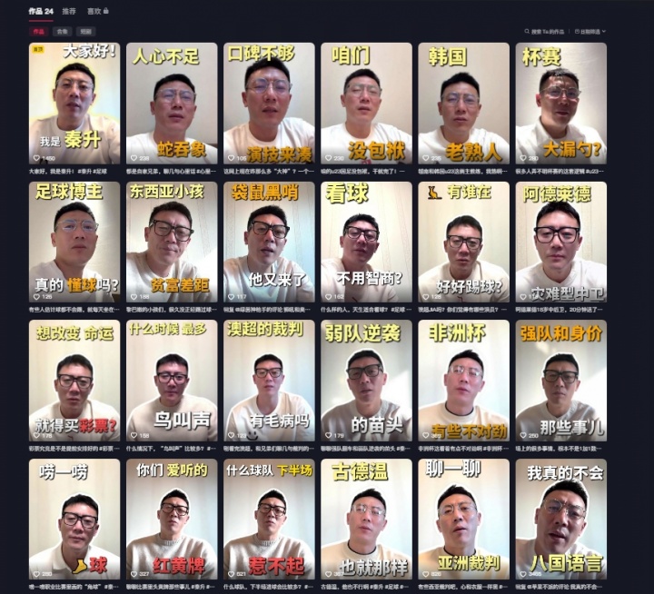 秦升上个月23日开通抖音,目前一个月时间已经发了24条动态,最新一条动态为3天前。