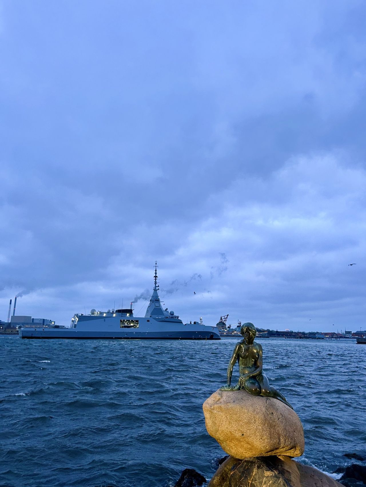 抵达丹麦首都哥本哈根的法国海军“干预防御护卫舰”(FDI)首舰“罗纳克海军上将”号(D660),网页链接,法国希望向丹麦推销该型护卫舰。每天认识一件兵器烽火问鼎计划