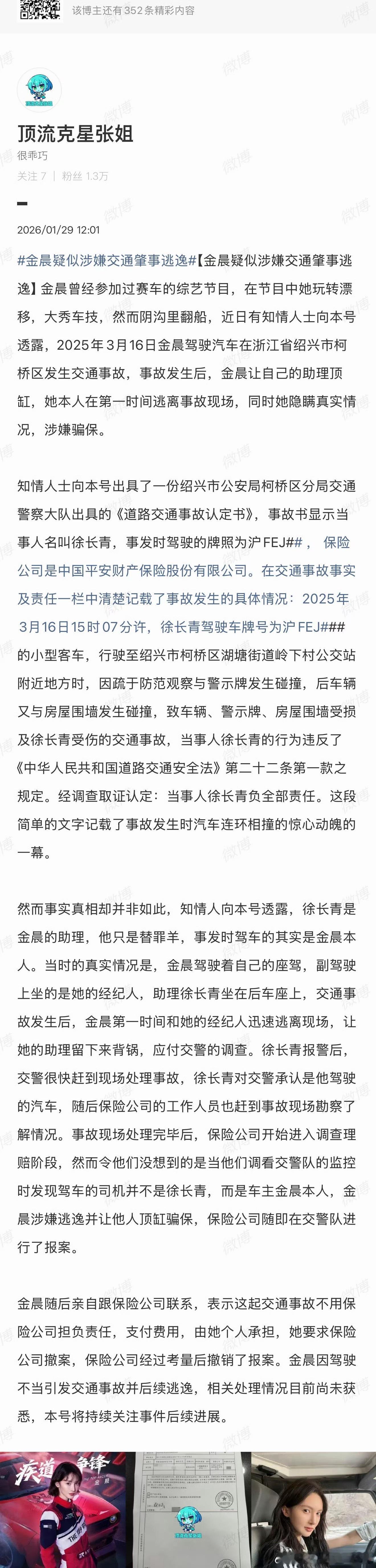 曝金晨肇事逃逸这种事儿一般情况爆出来就是实锤否则经济公司和团队不得给造谣这哥们送进去如果实锤又一位佳丽得出国发展了