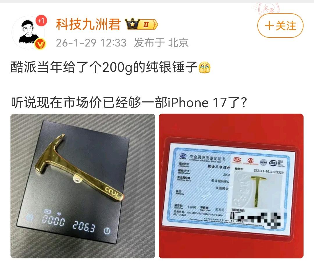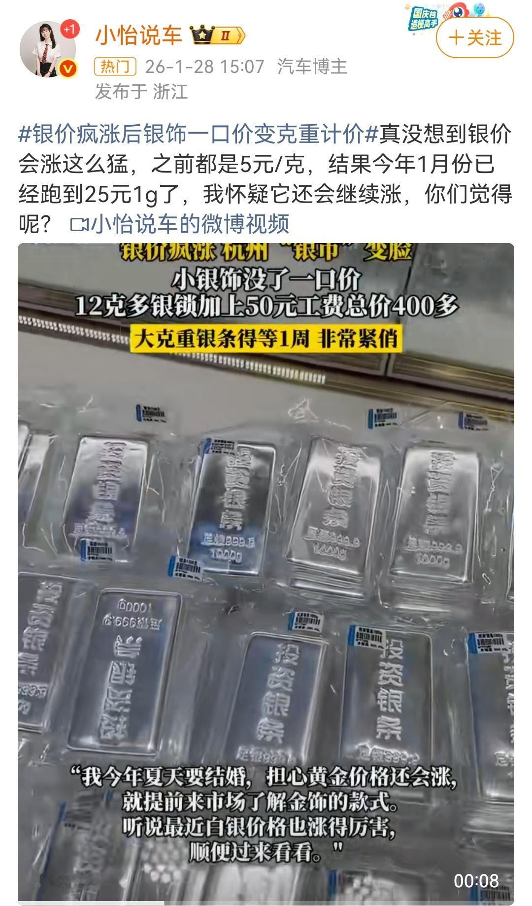 银价凶猛,大涨5倍。 (图一)多年松动的银价从每克五元涨到每克25元,涨势凶猛,银可是重要的工业原材料,如此猛涨,必带动相关产品价格猛涨。 (图二,图三)以前银价低迷,购买某款手机送个200克的小银锤,如今成了买椟还珠,这小银锤都价值五千元了。