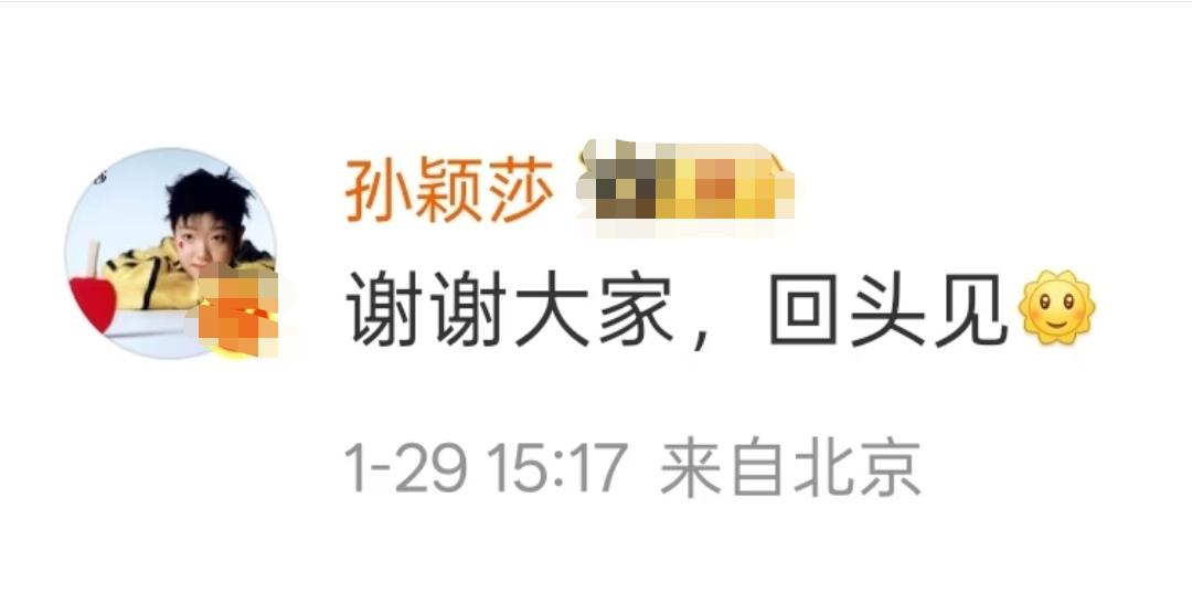 “谢谢大家,回头见!” 后面还带着个小太阳, 孙颖莎也知道大家想念她了, 在高露