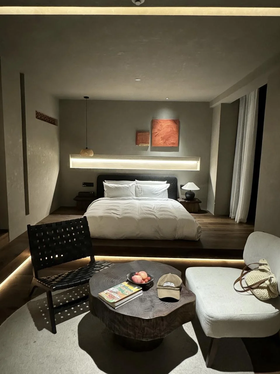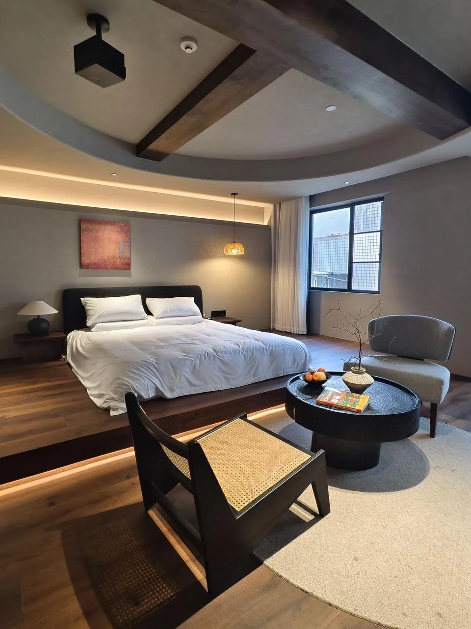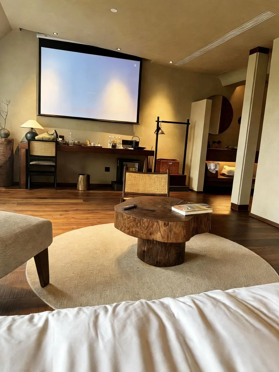 • 房间是侘寂风+智能家电,超清投影+智能马桶,细节拉满