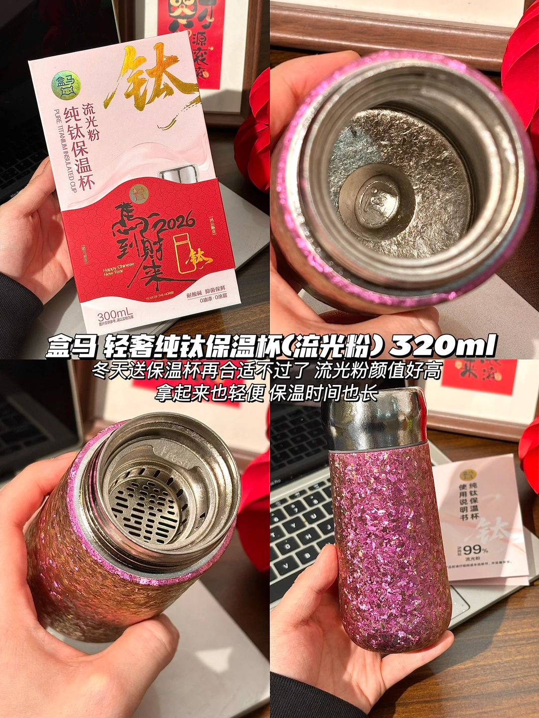 1️⃣盒马 轻奢纯钛保温杯(流光粉) 320ml