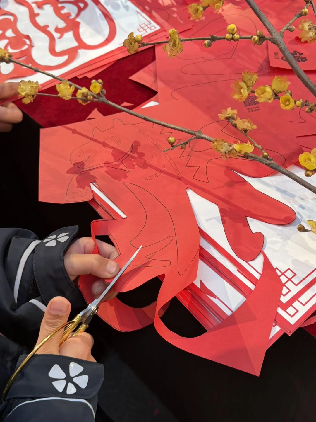 近长嘉汇的非遗灯会太火了,和朋友路过王家大院,偶遇了梅见家宴! 大院里挂满了灯笼和幔帐,满满的中式年味,一步一景,随手就能拍出中式氛围感照片! 现场游园活动有很多,转糖画、剪纸、拓福,像是回到了小时候过年~ 现场有好多来参加活动的人,大家都手持腊梅来相见,一束束的金黄和院中的布景很是搭配 顿时之间,梅香、酒香、饭香,音乐声、谈笑声、碰杯声,把这座百年大院装点得格外生动 一支梅、一瓶酒、一群人,便是岁末最治愈的圆满光景!