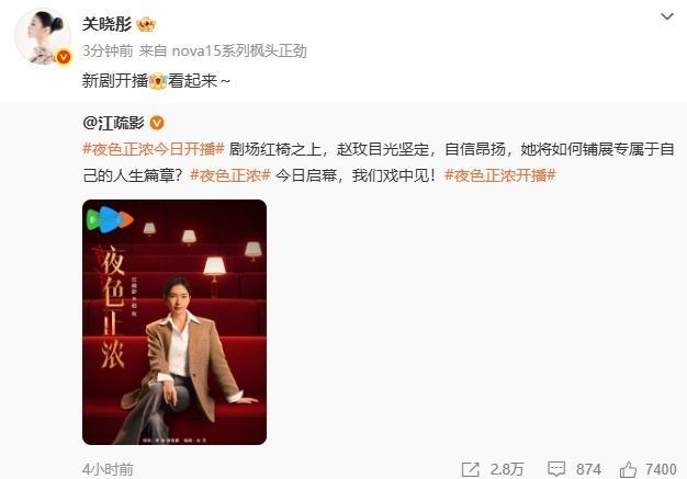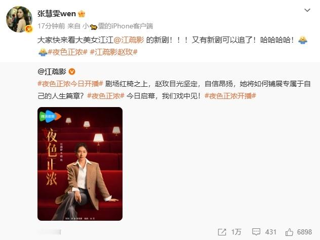 江疏影内娱人脉这块 江疏影内娱好人脉实锤!新剧《夜色正浓》开播,圈内好友纷纷出动撑场,花少团桃花坞的伙伴们更是倾力应援。她饰演的赵玫气场拉满,真的是疯狂的为我们姐姐打call!