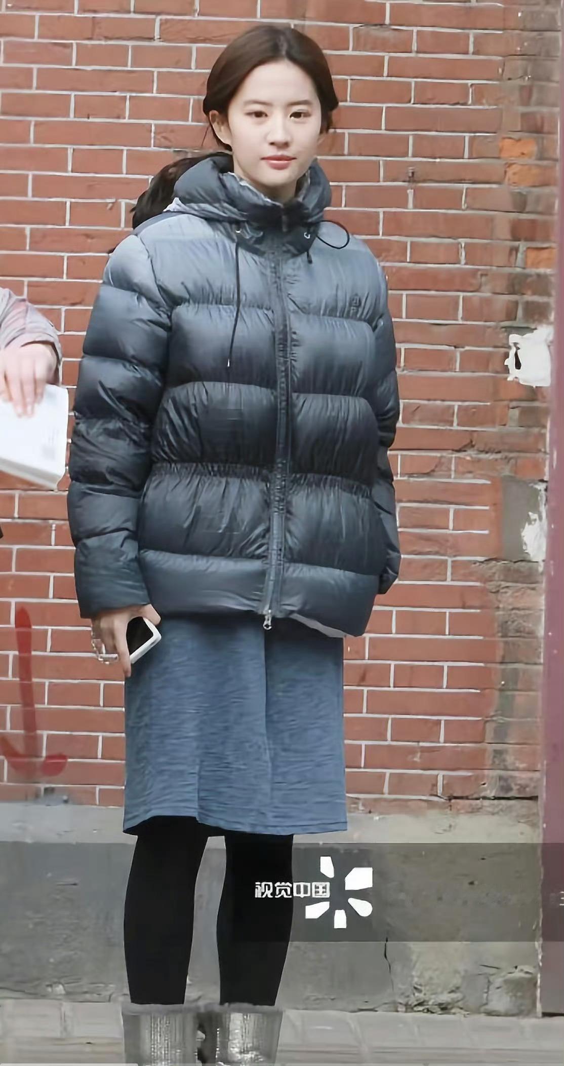 我去 一个冰冰一个刘亦菲 穿这种颜色的袄子 真是脸好啥都好…..