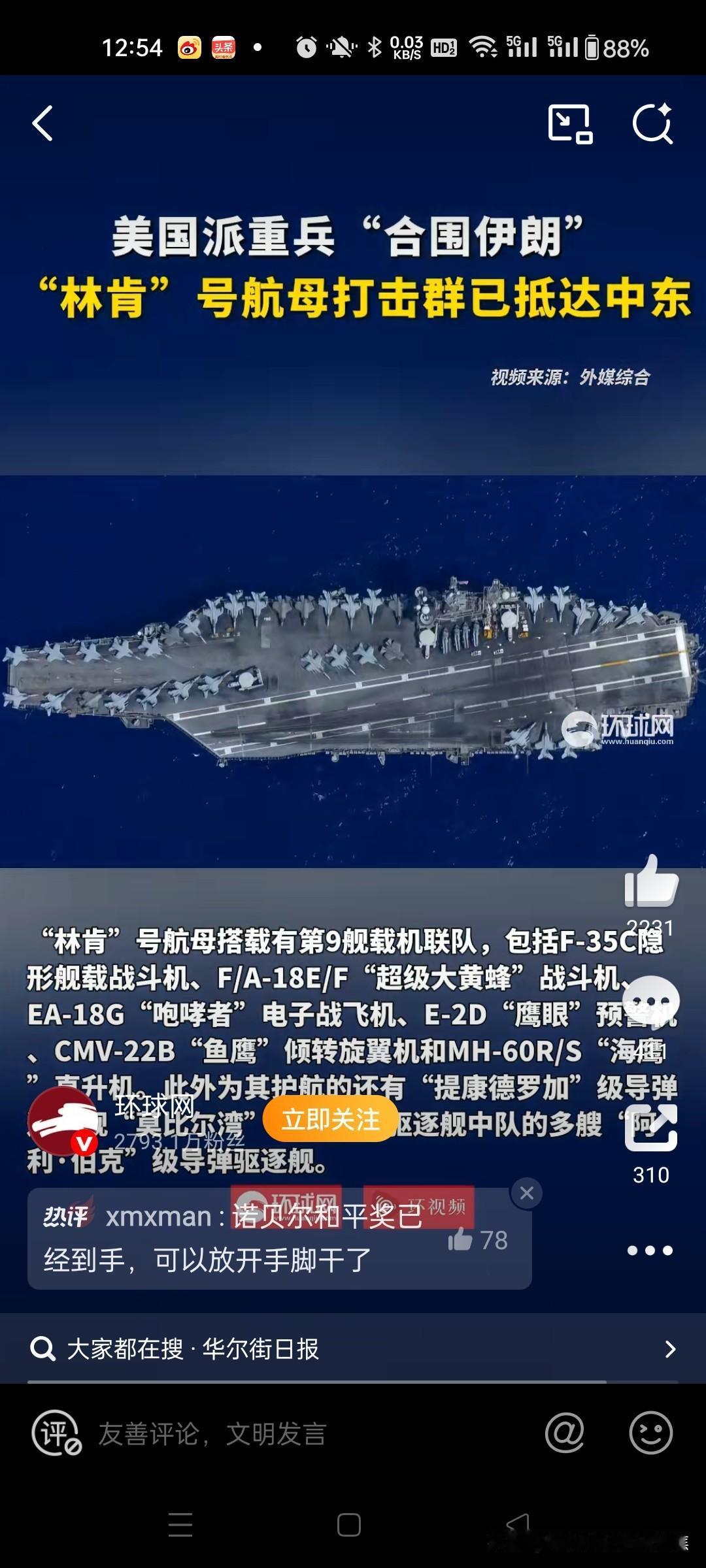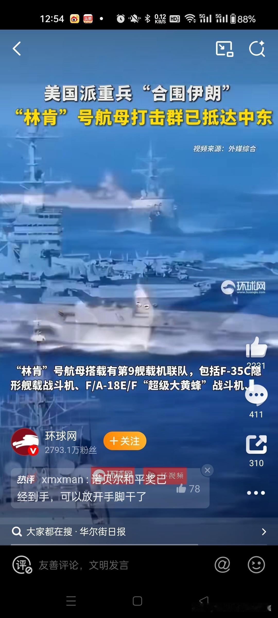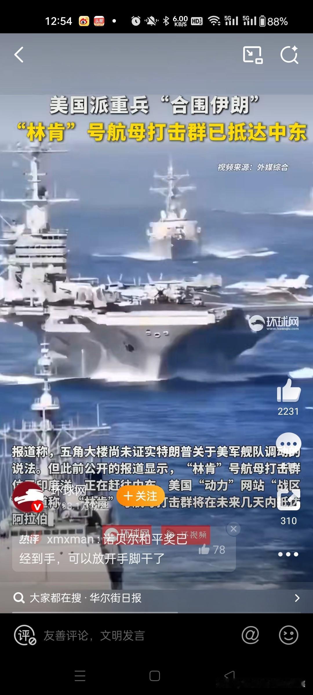 美军航母战斗群逼近伊朗、特朗普在纠结打还是不打 一、美方最新军事动态与潜在打击选项 航母打击群抵近施压 美军“亚伯拉罕·林肯”号航母打击群已进入中东水域,逼近伊朗周边海域。该舰队配备F - 35C隐形战斗机、“战斧”巡航导弹等先进武器,能在一两天内完成攻击准备。特朗普高调宣称此舰队“比派往委内瑞拉的更庞大”,还强调其“已准备好迅速执行任务” 曝光的打击方案细节 美媒披露特朗普正在评估多个打击选项,其中最具争议的是空袭伊朗领导人及安全官员,同时袭击核设施和政府机构也在考虑范围。美军向中东增派“爱国者”防空系统和“萨德”反导系统,以防伊朗可能的报复。 外交与军事的双重施压 特朗普一边威胁“下一次打击将比去年更猛烈”,一边要求伊朗“迅速回到谈判桌”,称希望达成“对各方有利的协议”,但前提是“伊朗不能拥有核武器”。@央视新闻611新京报环球网环球网央视新闻央视新闻 二、伊朗的强硬回应与战备状态 最高层级警告 伊朗最高领袖哈梅内伊的政治顾问阿里·沙姆哈尼用多国语言发文,直指美国所谓“有限打击”是“幻觉”,并警告:任何美军行动都将被视为战争开端,伊朗将立即对“特拉维夫(以色列)的心脏”及美国支持者发动“空前反击” 军事准备就绪 伊朗外长阿拉格齐宣称武装部队“手指已扣在扳机上”,能对侵犯领土、领空、领海的行为作出“迅速且强有力的回应”。高级指挥官萨亚里强调,伊朗的报复将让对手“付出沉重代价”。 三、局势升级的深层动因与决策矛盾 谈判僵局触发对抗 美伊就限制核计划及弹道导弹的谈判长期停滞,特朗普声称伊朗此前“未达成协议”导致美国去年发动“午夜之锤”行动(轰炸核设施),并暗示此次是“最后通牒”。伊朗坚持谈判需“平等且无威胁”,要求美国停止军事施压。@新华国际13 特朗普政府的决策困境 专家分析指出,美军在技术层面的打击准备已就绪,但特朗普纠结于“打击性价比”:倾向效仿对委内瑞拉或去年空袭伊朗核设施的“速战模式”,以最小成本实现威慑,却担忧伊朗反击可能引发地区混战,导致成本失控。 以色列的关键角色 以色列被曝提前获知美军行动准备进展,且有迹象显示其担心美伊谈判达成“不利协议”,可能借机推动先发制人打击。伊朗直接将以色列纳入报复目标,进一步放大冲突风险。 四、地区紧张态势与潜在连锁反应 伊朗处于“最高战备状态”,部署数千枚中近程弹道导弹及无人机,威胁封锁霍尔木兹海峡。 英国、卡塔尔等国已向中东增派战斗机,防范局势突变。 以色列评估认为,美军行动“最终取决于特朗普个人意志”,且“几天内可能发动攻击”。 当前局势呈现“军事部署完成但决策悬而未决”的特点,双方互划红线使擦枪走火风险陡增,而特朗普对“成本收益”的权衡可能成为下一步行动的关键变量。