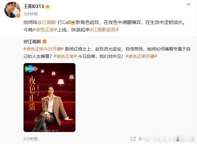 江疏影内娱人脉 被江疏影的内娱人脉惊到了!《夜色正浓》上线好友集体打call,从花少团到圈中好友全出动,真诚待人终获真心,赵玫太绝了😍
