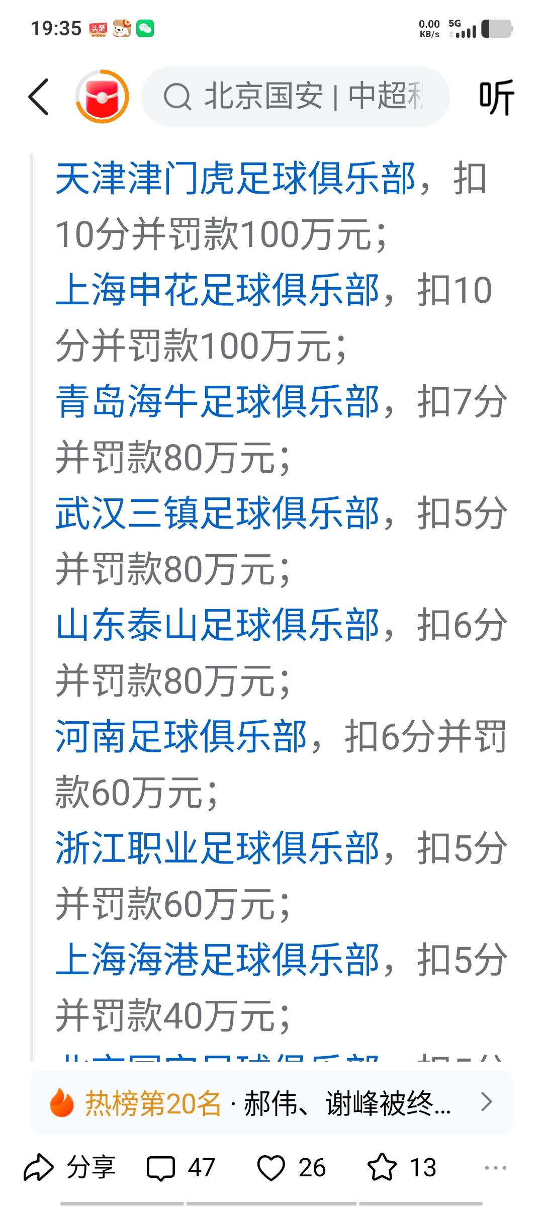 津门虎足球俱乐部被扣除10分,罚款100万,需为过往的历史问题埋单。对此你作何看