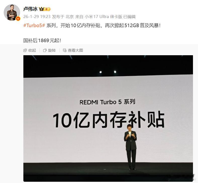 红米Turbo5获小米10亿内存补贴 卖一台少赚200,这是做好了卖500万台的准备啊…